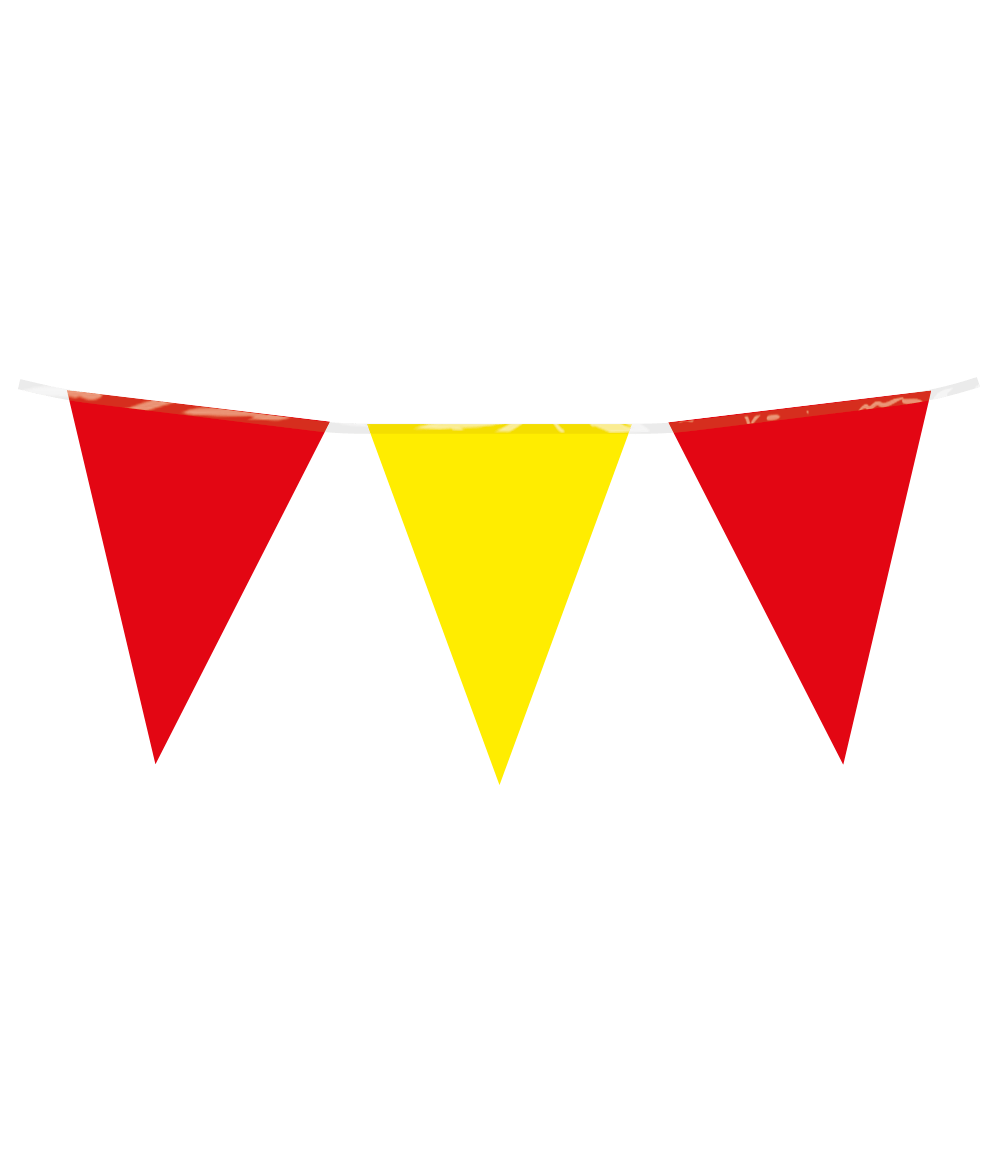 Met de party flags PE - red yellow uit de Basic collectie van Paper Dreams haal je een kwalitatieve rood gele vlaggenlijn in huis voor een scherpe prijs. De vlaggenlijn is 10 meter lang. De vlaggetjes zijn gemaakt van Polyetheen (PE) en zijn gemakkelijk op te hangen.