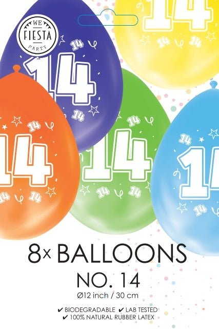 Gekleurde Ballonnen 14 Jaar 30cm 8st