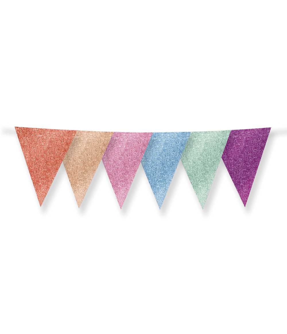 De Glitter flags van Paper Dreams zijn letterlijk een schitterende toevoeging aan de Basic collectie! Met een lengte van 6 meter en vlaggetjes van 16 x 20cm stelen deze vlaggetjes op elk feestje de show.