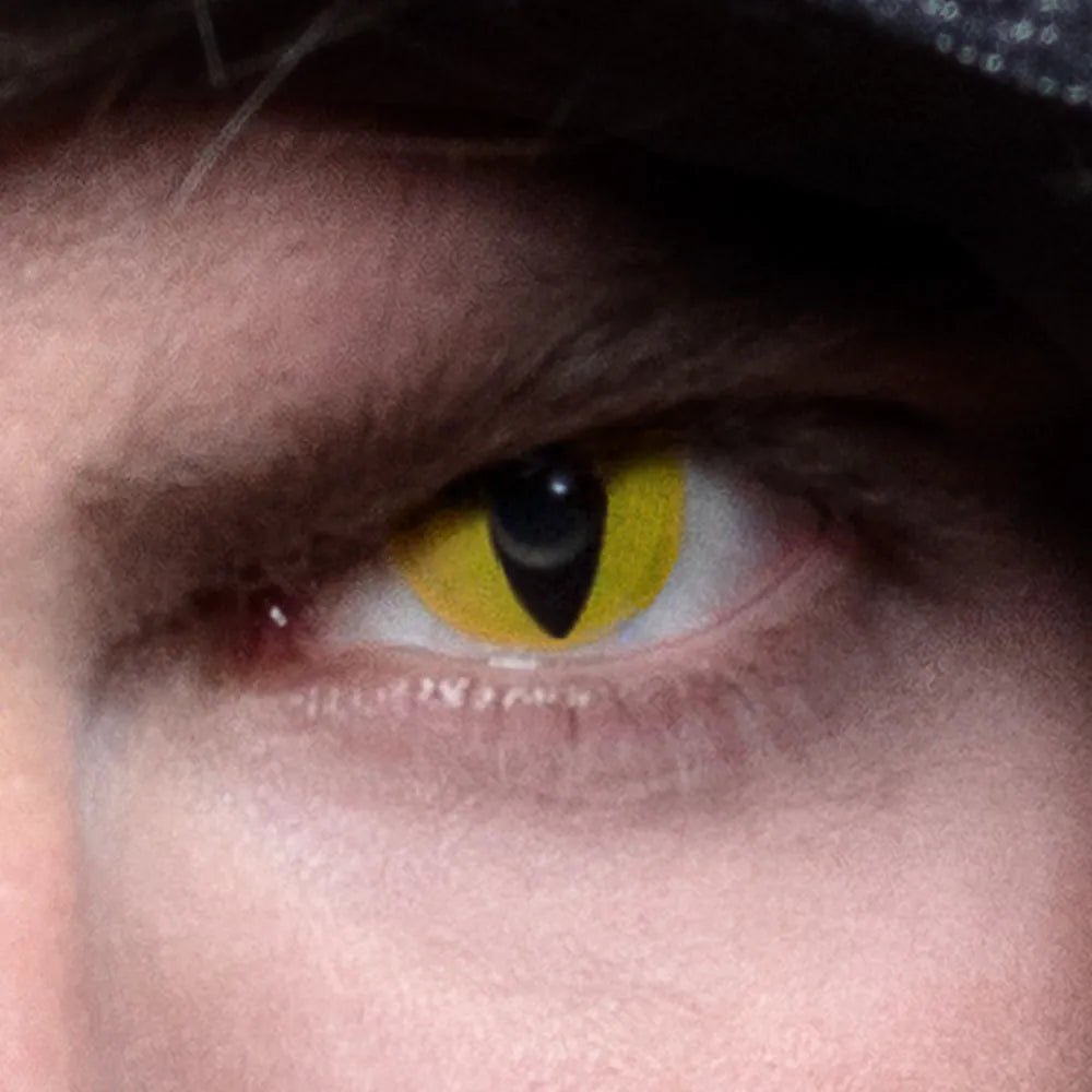 Deze gele kattenogen kijken je doordringend aan. Het perfecte accessoire voor een freak als je het combineert met een cape, maar natuurlijk ook te gek voor de poezenlook tijdens carnaval als je het combineert met kattenoortjes. De contactlenzen zijn zacht, dus dragen comfortabel. Deze zachte lenzen zonder sterkte zijn 1 maand te gebruiken, dus je kunt er ook na het feest nog mensen mee de stuipen op het lijf jagen. Niet geschikt voor kinderen.
