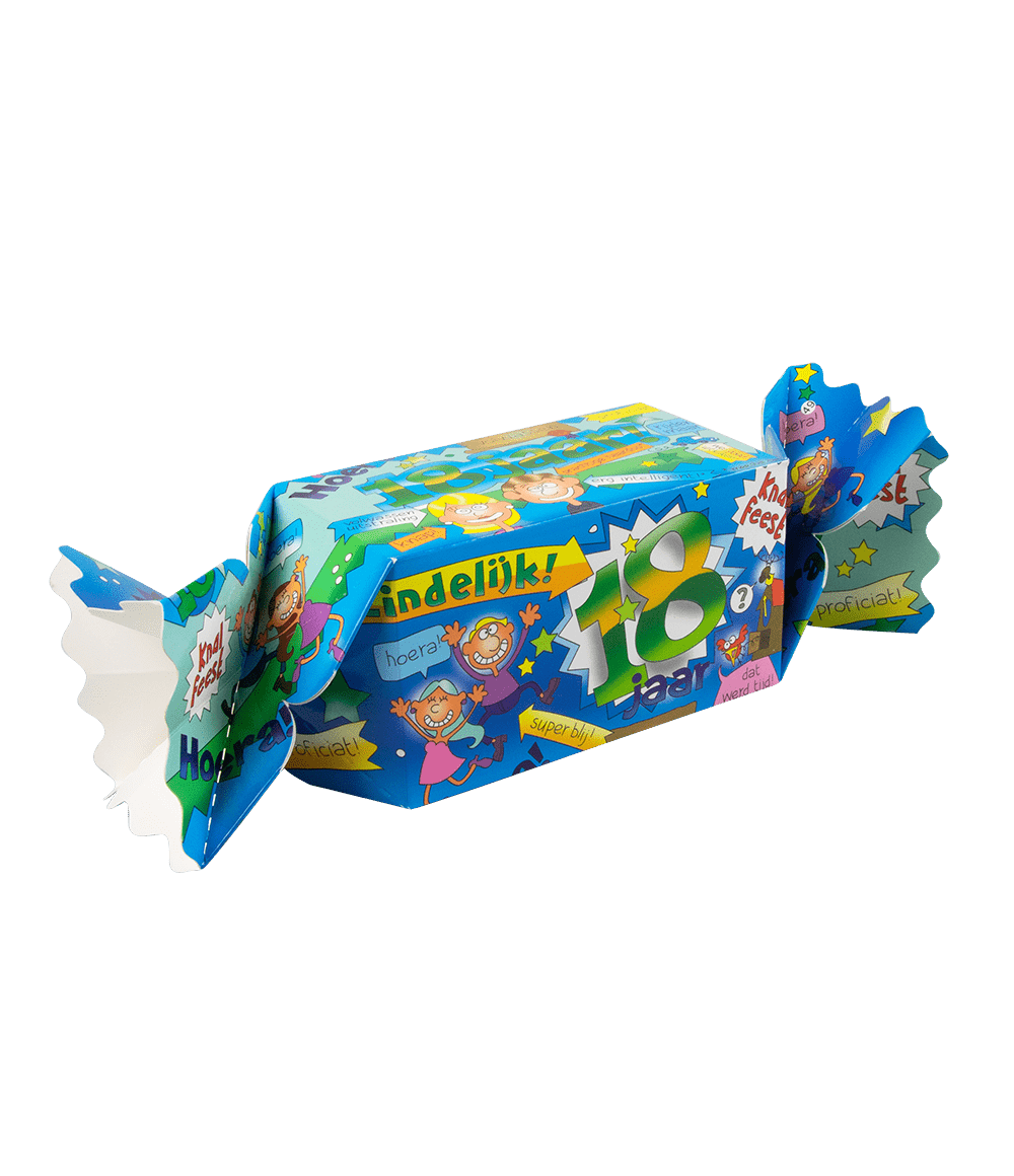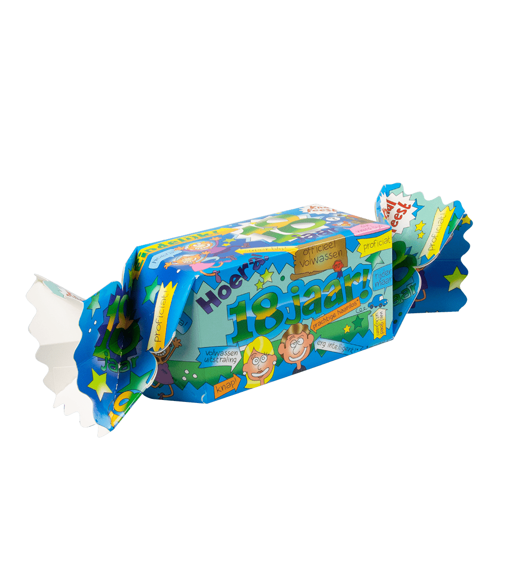 Verpakkingsinhoud: Kado / Snoepverpakking Pret - 18 jaar