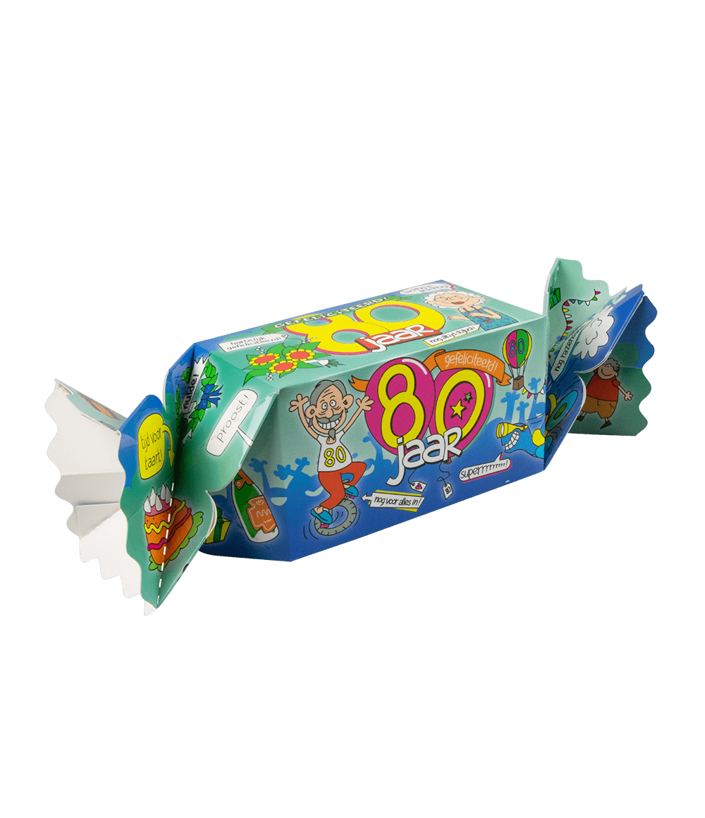 Verpakkingsinhoud: Kado / Snoepverpakking Pret - 80 jaar