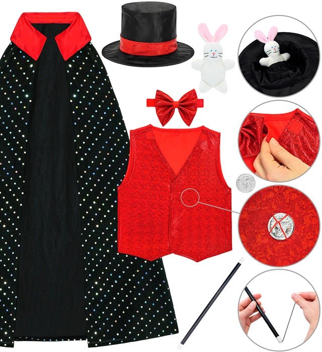 Accessoires inbegrepen: Hoed met verstopte ruimte, toverstok, munt en konijn.