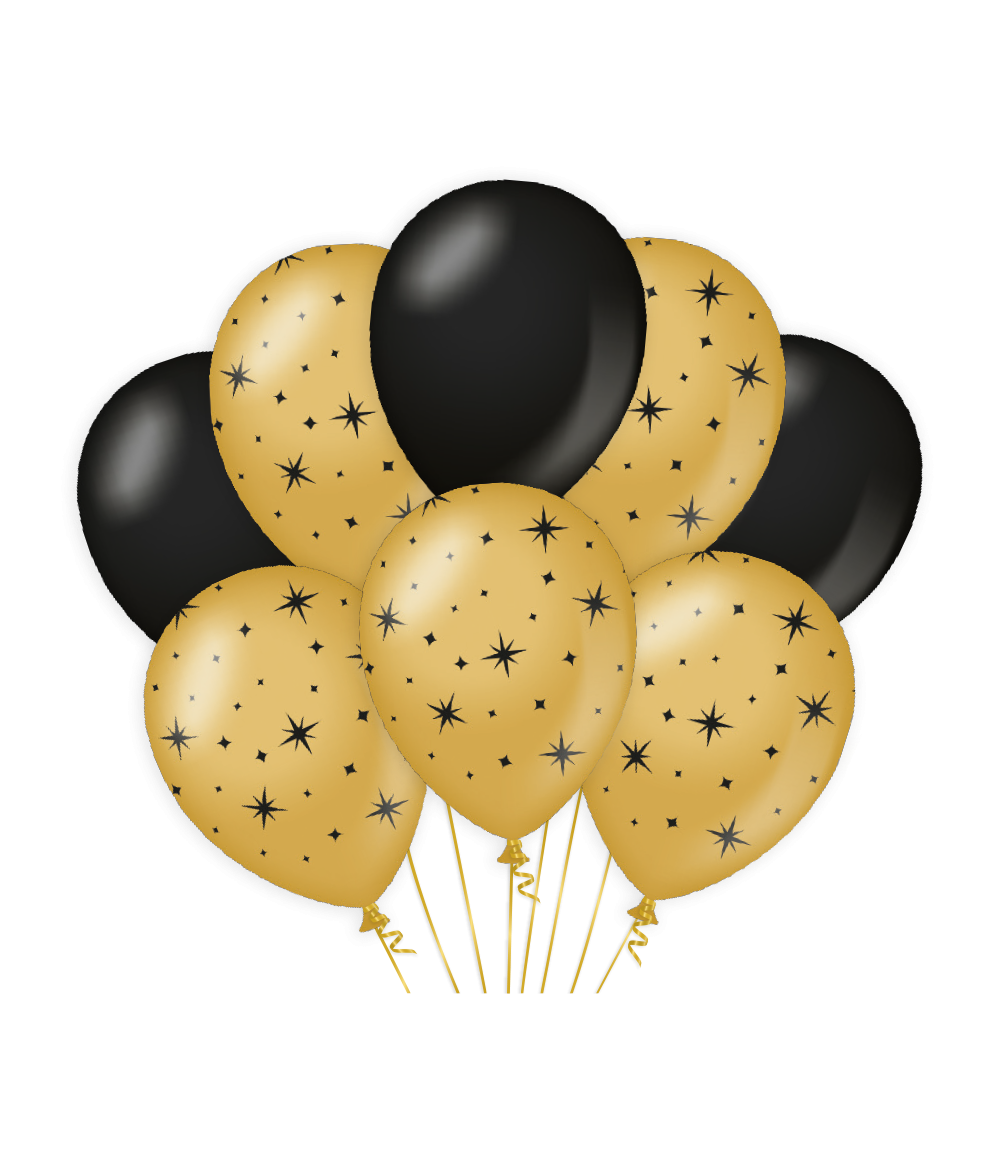 Goud Zwarte Ballonnen Sterren 30cm 6st