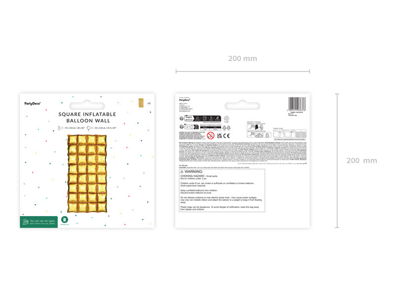 Achtergrond van ballonfolie in goudkleur. Afmetingen voor het opblazen ongeveer 72x143 cm. Afmetingen na opblazen 55x110 cm. Opblazen met lucht. Set is inclusief rietje.