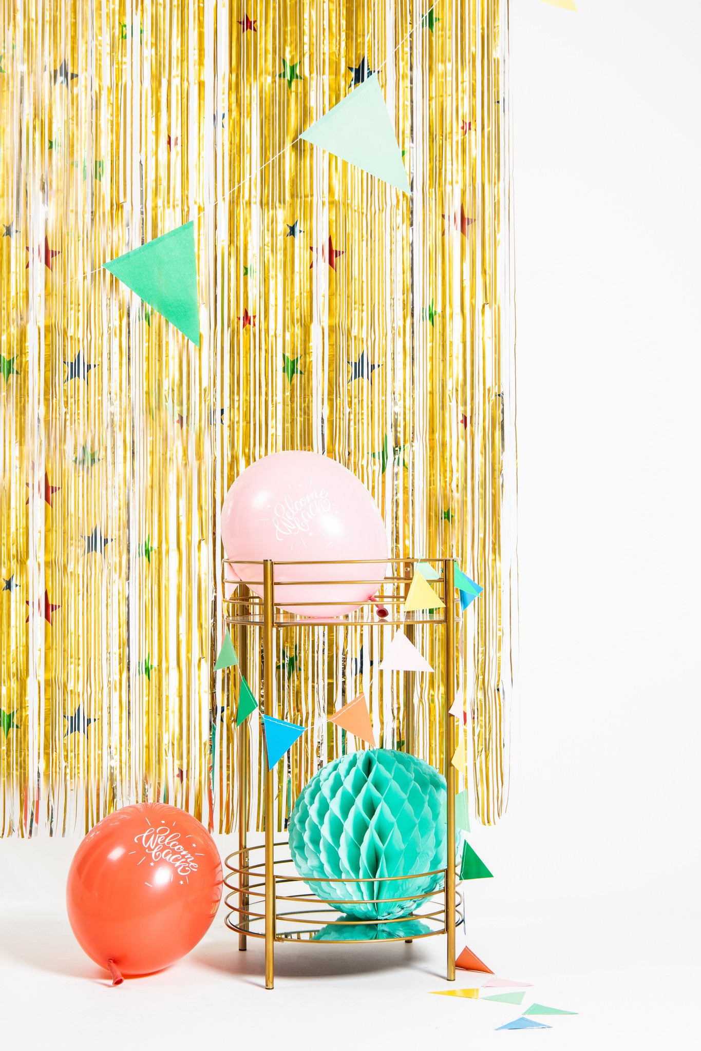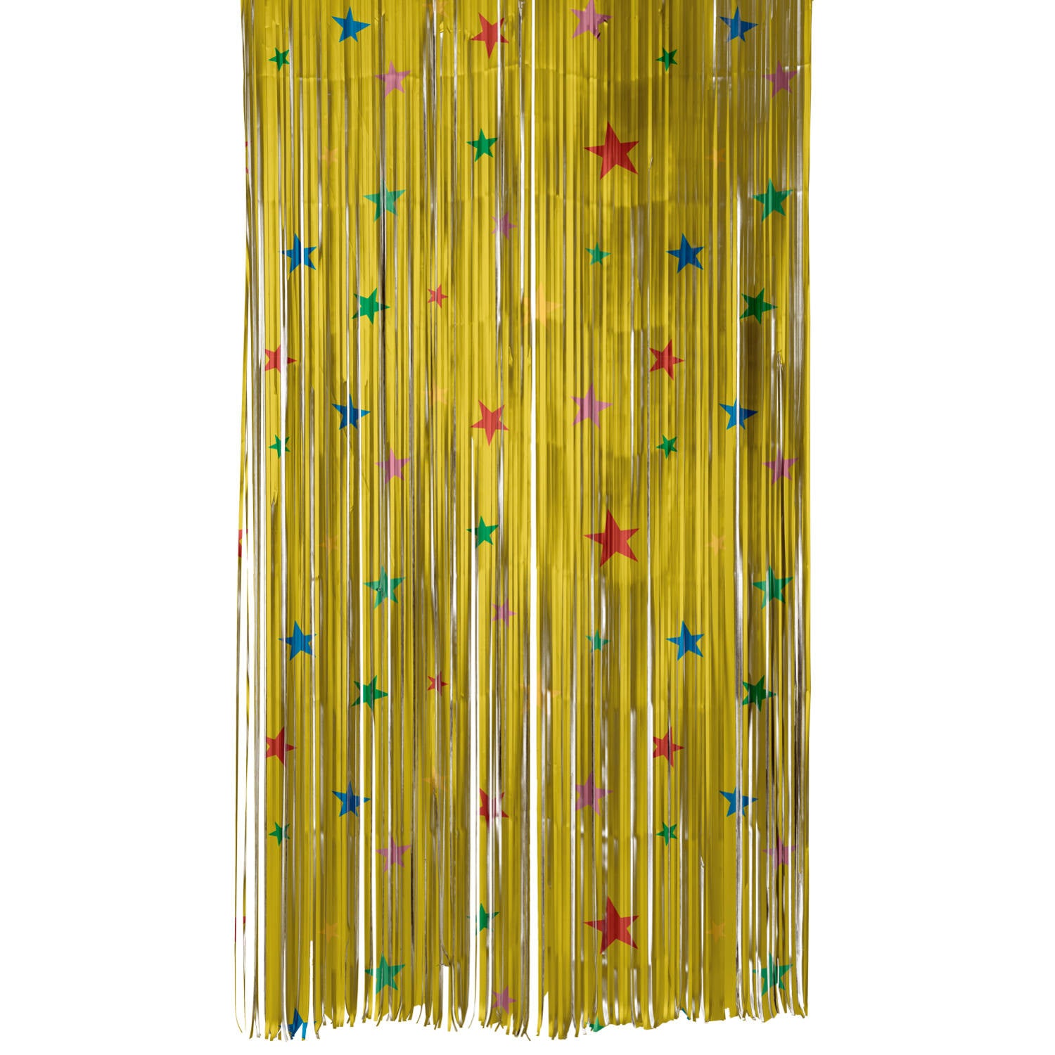 Deurgordijn Folie Retro Sterren - 2x1 m. Inhoud: 1 deurgordijn. Kleur: Goudkleurig. Bijvoorbeeld te gebruiken tijdens de volgende feestgelegenheid/feestgelegenheden: Verjaardag en Kinderfeestje. Het artikel is 2x1 meter. Het artikel is gemaakt van folie.