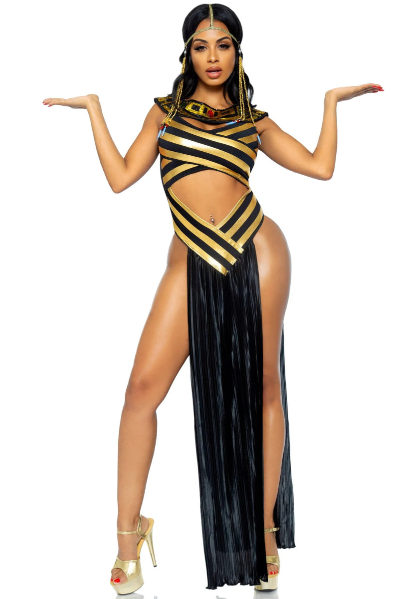 Straal als een mythische verschijning in het Godin kostuum van Leg Avenue! Dit majestueuze 3-delige ensemble bestaat uit een glinsterende gouden catsuit, een cut-out jurk met schitterende juwelen op de kraag en een bijpassende hoofdversiering. Perfect voor Halloween, carnaval of een betoverend themafeest waar je wilt stralen als een ware godin! ⚡🏛️