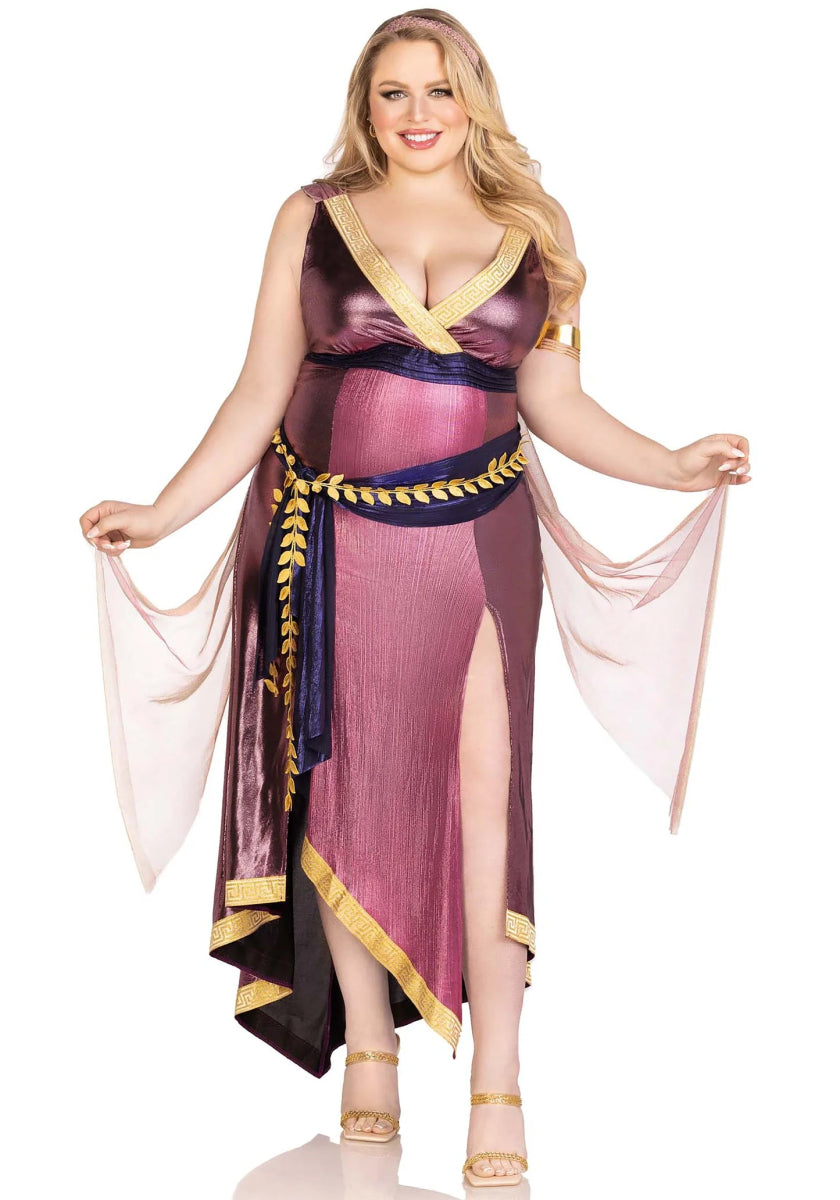 Voel je een Griekse godin in deze 3-delige Megara set! De betoverende shimmer-jurk met asymmetrische schouderband en lintaccenten zorgt voor een koninklijke uitstraling. De aangehechte iriserende drapering met vingerlus, de goudkleurige tailleband en de bijpassende hoofdaccessoire maken deze look mythisch en onvergetelijk! 🌟👑
