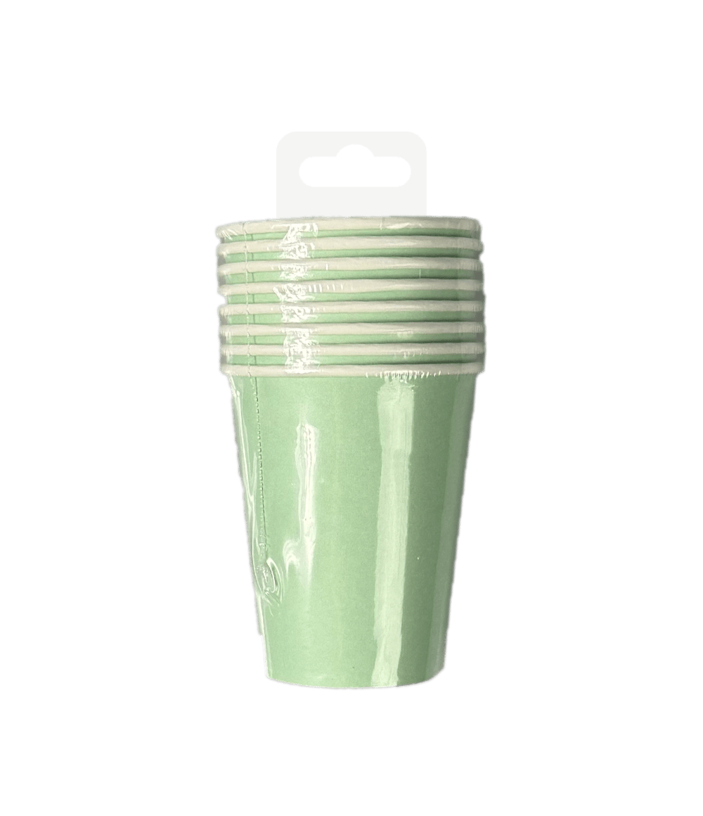 De Cups - Pastel green zijn de perfecte decoratie artikelen op een feestje waar de kleur pastel groen het thema is. Deze bekertjes zijn 8,5 x 7cm, zitten per 8 verpakt en passen perfect bij de overige pastel groene artikelen zoals de confetti, servetten, bordjes, tafelkleden, snackboxes en vlaggenlijn. Presenteer deze items bij elkaar, zodat het voor de klant direct duidelijk is waar deze collectie uit bestaat. Deze bekertjes zijn van papier, wat het tot een milieuvriendelijke keuze maakt!