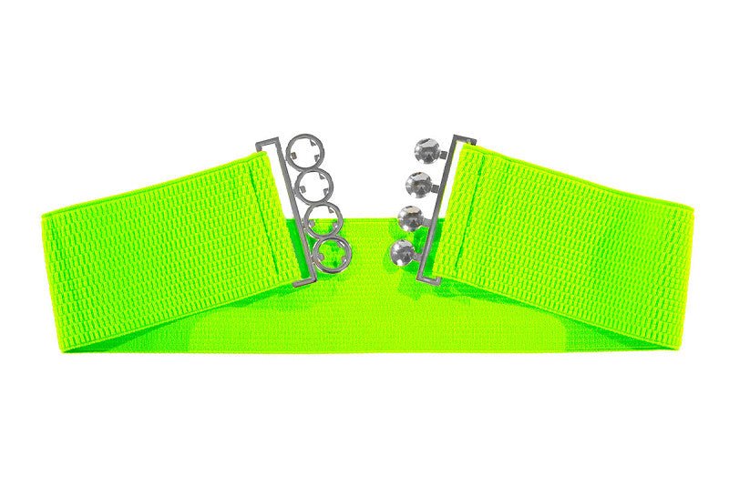Leuke elastische riem in groen met zilverkleurige gesp. Perfect als accessoire voor feestjes, thema-evenementen of verkleedoutfits.