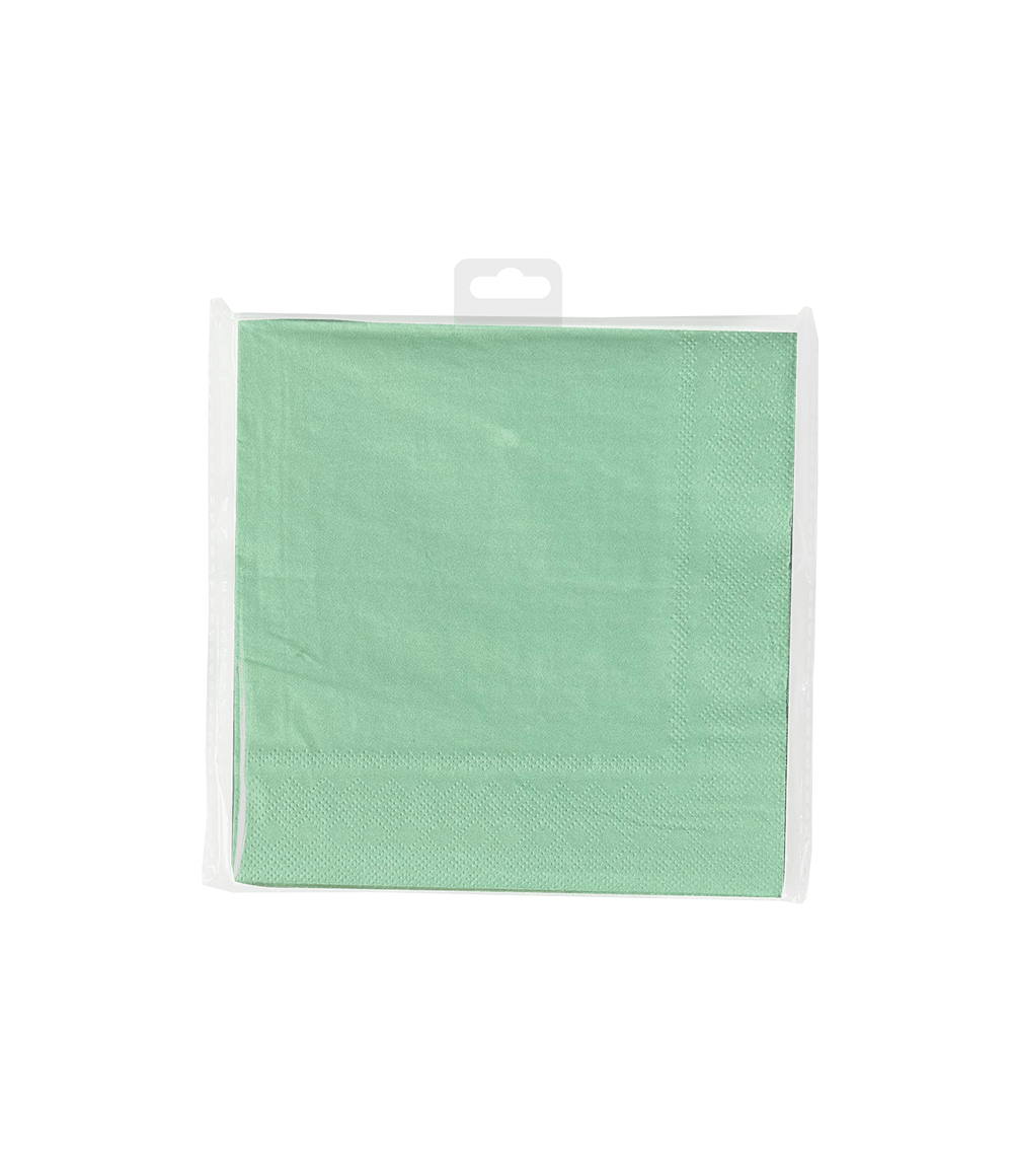 De Napkins - Pastel green zijn de perfecte decoratie artikelen op een feestje waar de kleur pastel groen het thema is. Deze servetten zijn 16,5 x 16,5cm, zitten per 8 verpakt en passen perfect bij de overige pastel groene artikelen zoals de confetti, bordjes, bekertjes, tafelkleden, snackboxes en vlaggenlijn. Presenteer deze items bij elkaar, zodat het voor de klant direct duidelijk is waar deze collectie uit bestaat. Deze servetten zijn van papier, wat het tot een milieuvriendelijke keuze maakt!
