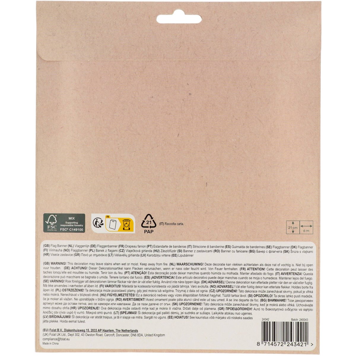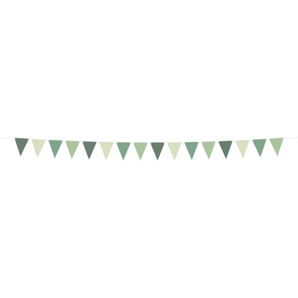 Mooi groen is ook feestelijk! Vlaggenlijn - Serene Sage - 6 meter. Inhoud: 1 vlaggenlijn. Bijvoorbeeld te gebruiken tijdens de volgende feestgelegenheid/feestgelegenheden: Verjaardag, Themafeest. Een vlaggenlijn met mooie groene vlaggen in vier verschillende tinten groen. Er zitten 16 vlaggen op één lijn. De vlaggen zijn 17 x 21 cm. De lijn is gemaakt van wit polyester lint. De vlaggen kunnen afzonderlijk over het lint worden geschoven. Dit artikel is gemaakt van FSC papier.