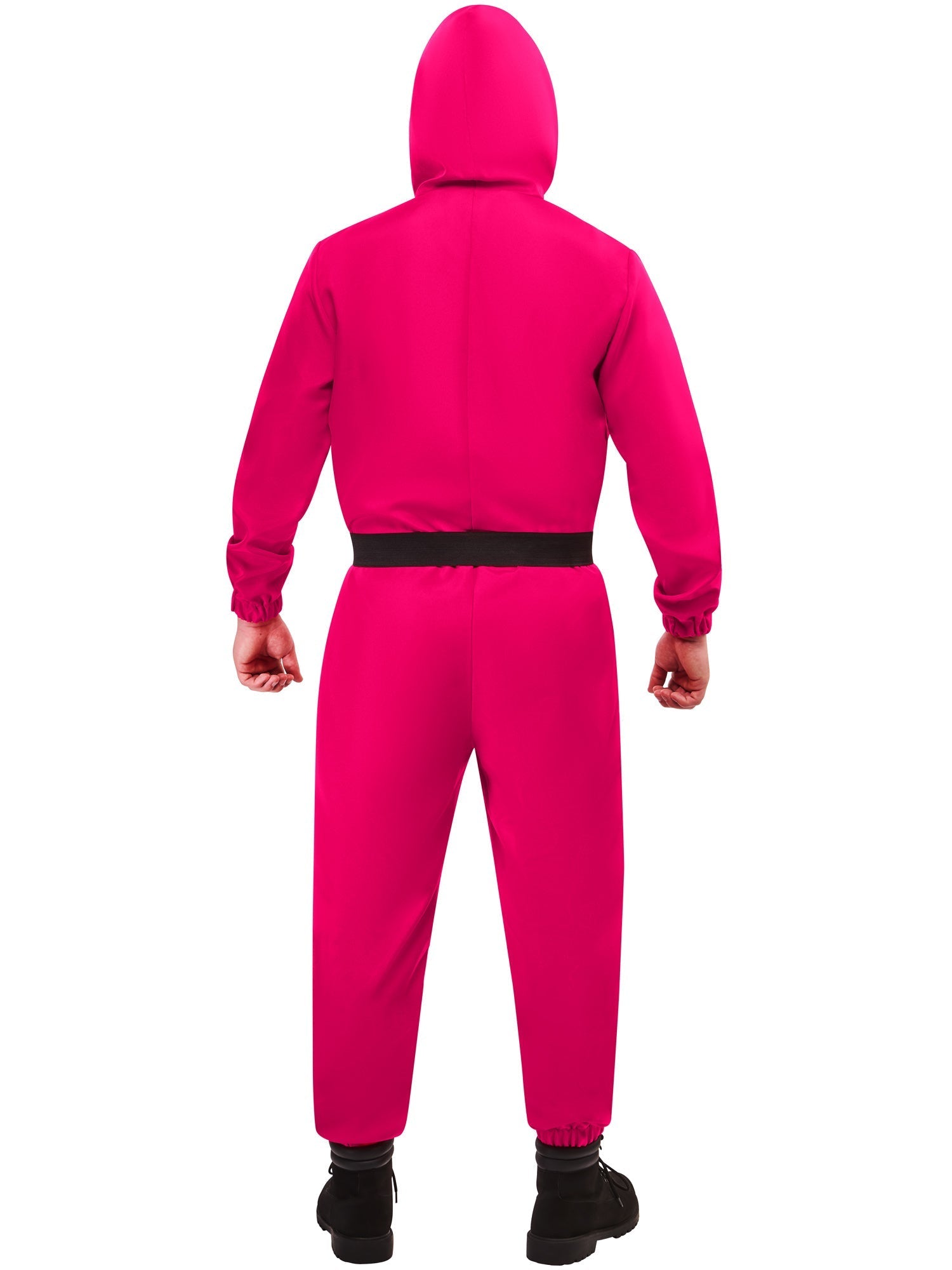 Eer het iconische uiterlijk van de Guards met deze opvallende rode jumpsuit, geïnspireerd op de wereldwijde Netflix-hit Squid Game. Ontworpen met een indrukwekkende capuchon en bijpassende riem, verandert dit kostuum je direct in een van de onvergetelijke handhavers uit de serie.