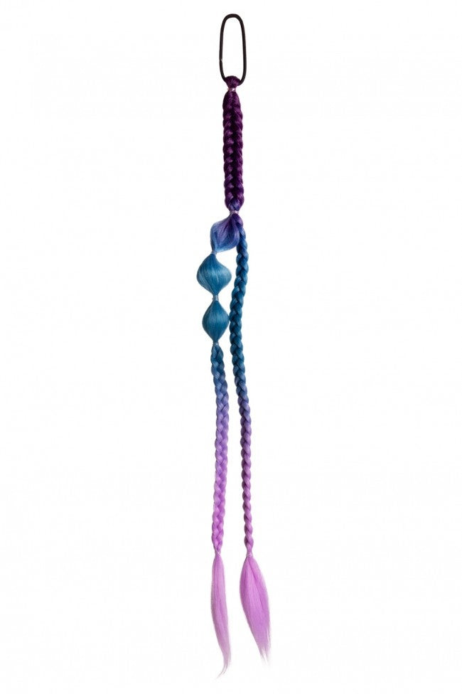 Deze extension bestaat uit 2 stringen van geknoopt haar met elastiek en gevlochten haar met een pluim aan het eind.