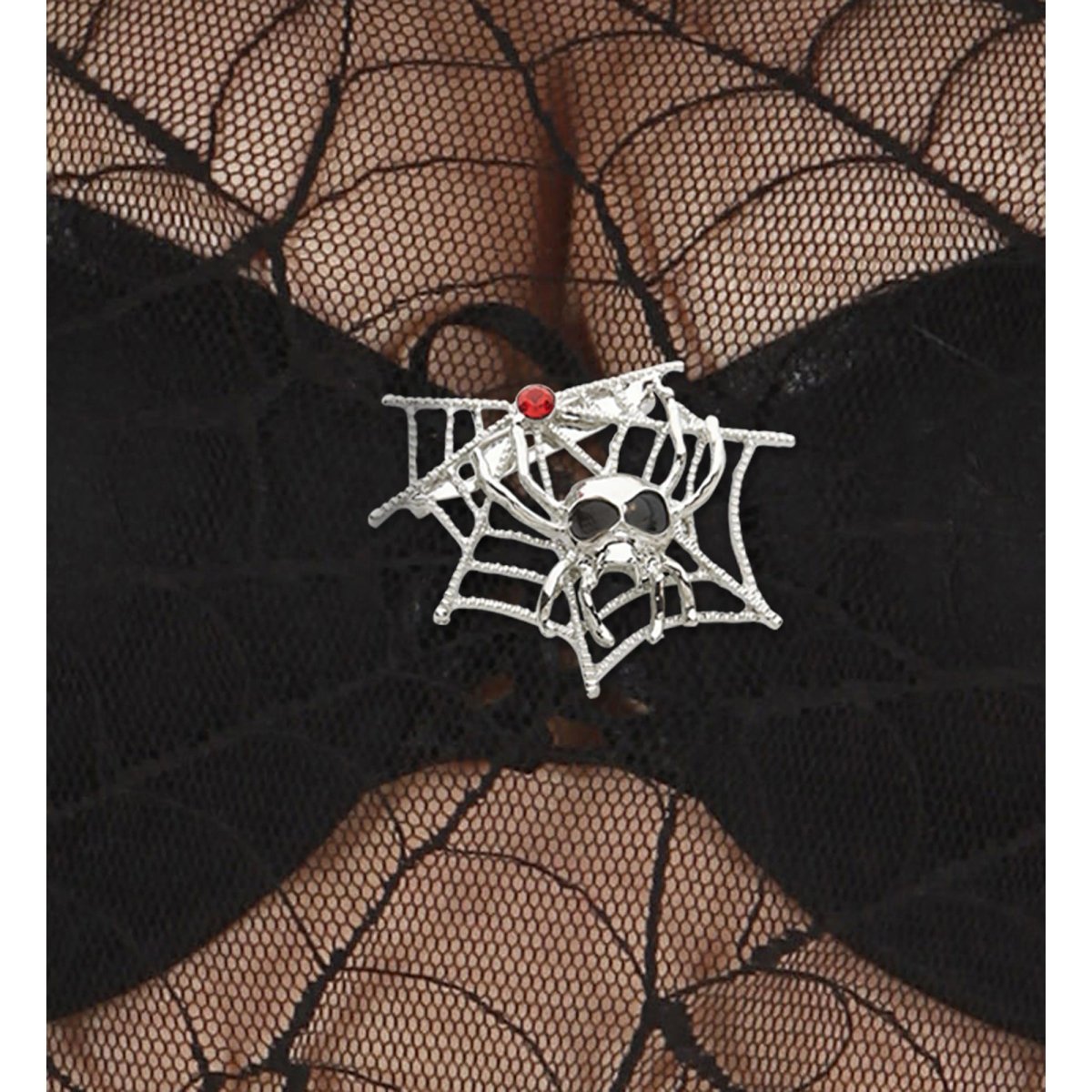 Voeg een griezelig detail toe aan je outfit met deze Halloween spinnenweb-broche.