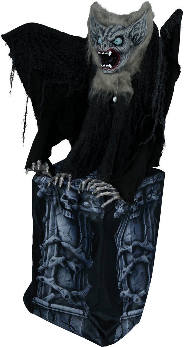 Geef je Halloweenversiering een extra griezelige dimensie met deze 1,5 meter grote vleermuis op een steen. Het bewegende ontwerp, gecombineerd met licht- en geluidseffecten, zorgt voor een interactieve en enge sfeer in je huis of tuin.