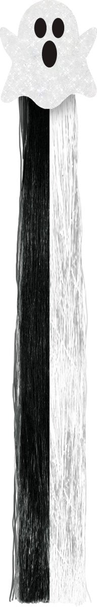 Halloween Hair Extension Zwart Wit Spook 40cm