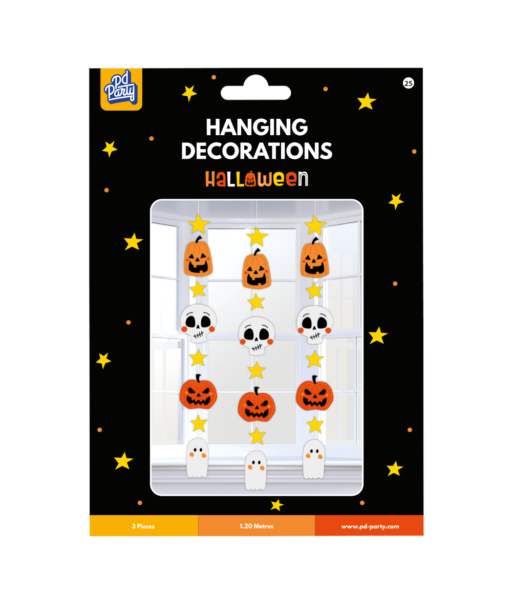 Geef je Halloween-feest extra sfeer met deze hangende slinger van 1,2 m. De unieke decoratie zorgt direct voor glans en een feestelijke uitstraling.
