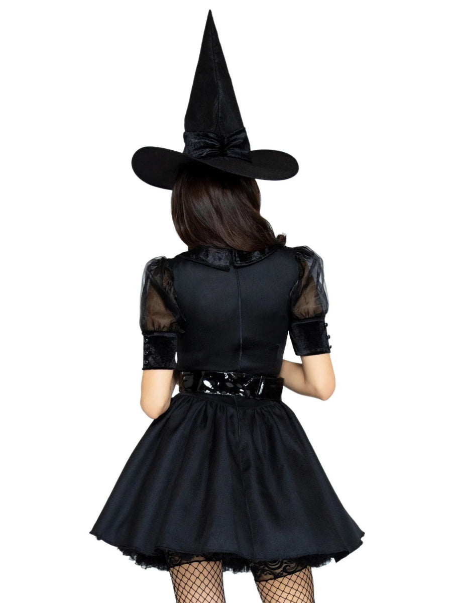 Bereid je voor om de betovering te werpen met dit 3-delige heksenkostuum van Leg Avenue! Dit kostuum heeft een vintage geïnspireerde jurk met fluwelen lijfje, een kraag, een brede riem en een bijpassende hoed. Het is het perfecte kostuum voor Halloween, themafeesten of wanneer je een mystieke, sexy uitstraling wilt creëren! 🌙🎃