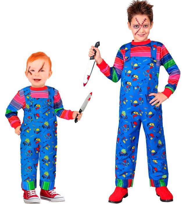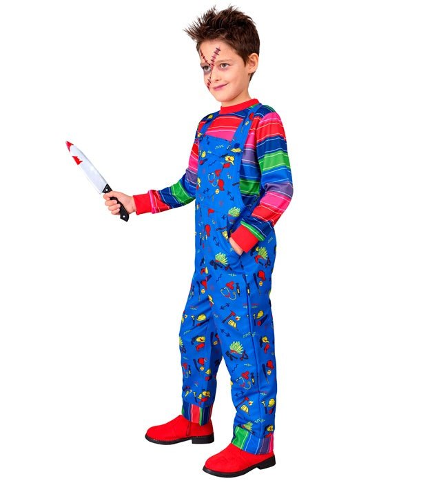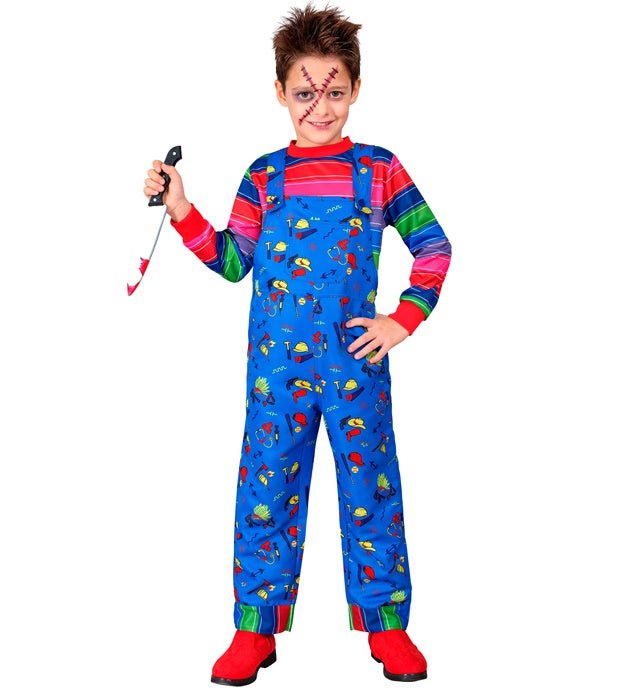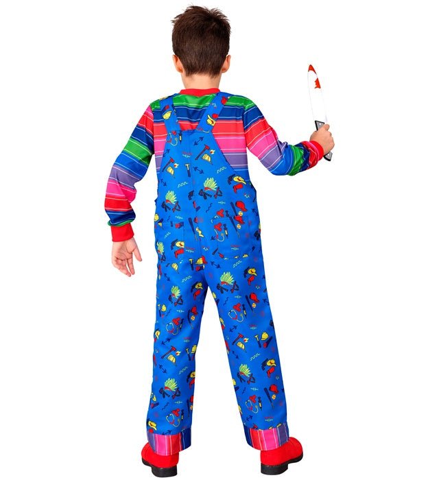 Transformeer in het beruchte horrorpersonage met dit Chucky kostuum. Perfect voor Halloween of een griezelfeest. Het kostuum bestaat uit een overall en shirt in herkenbare rood/blauwe kleuren.