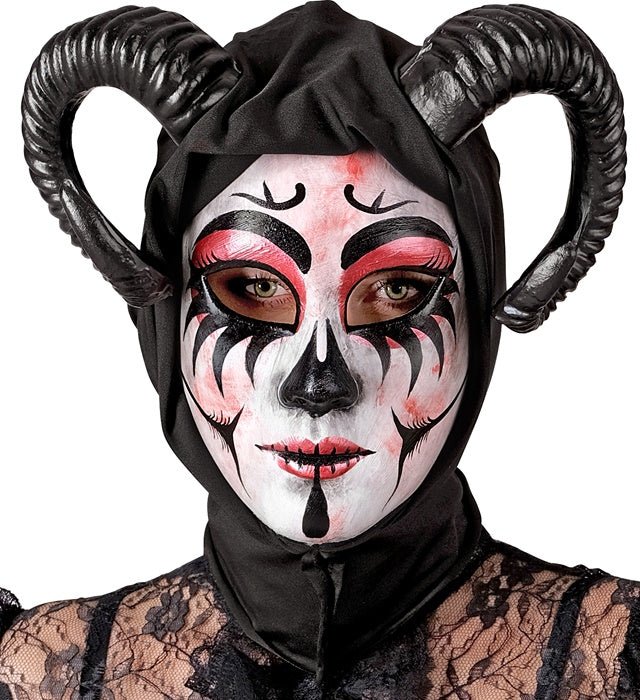 Geef je Halloween- of verkleedoutfit een sinistere uitstraling met dit duivelmasker voor dames. Het zwarte ontwerp is perfect voor themafeesten, theateroptredens of Halloweenpartijen.