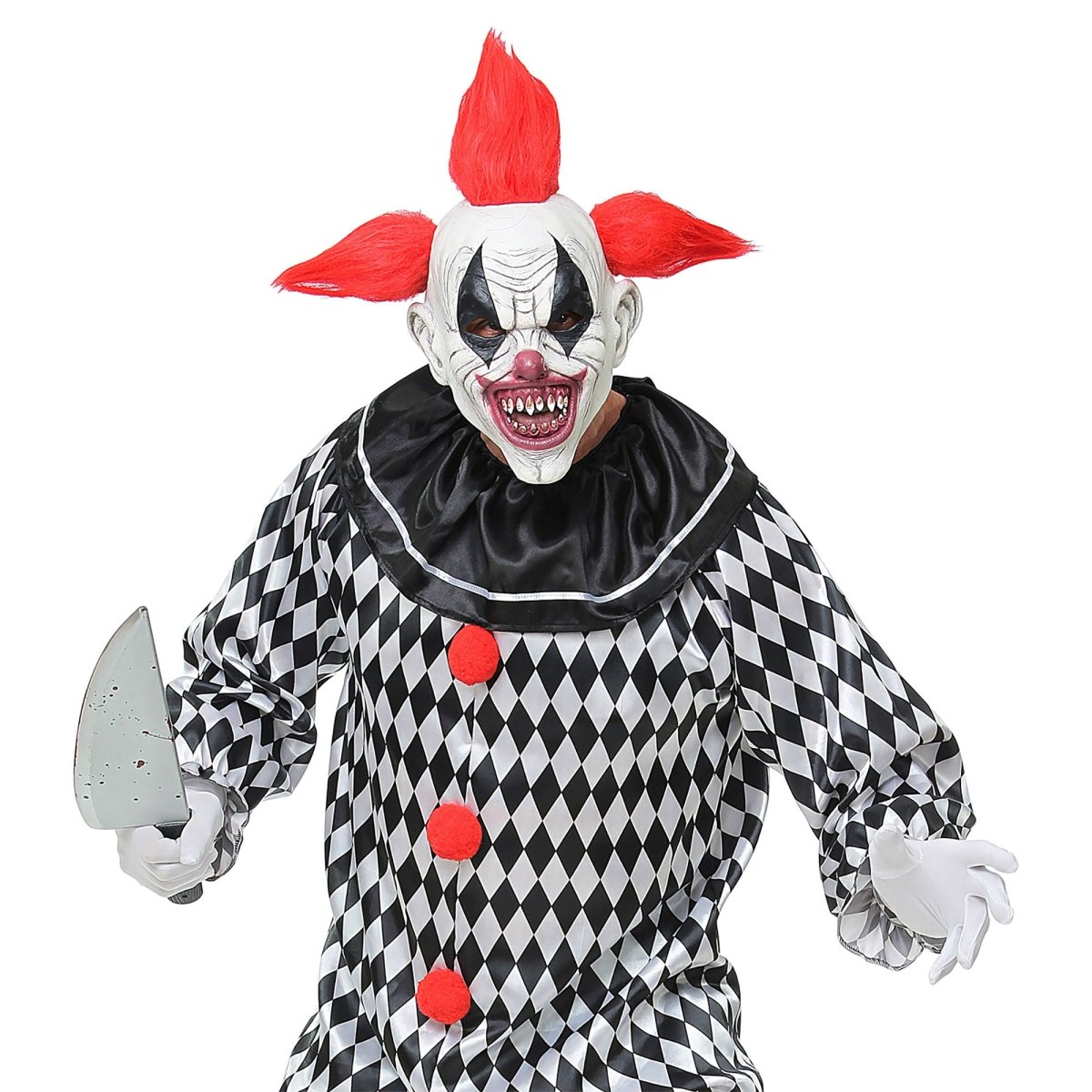Maak je griezelige Halloweenoutfit compleet met dit rode en witte clownmasker. Perfect voor themafeesten, trick-or-treat of verkleedpartijen waar een angstaanjagend effect gewenst is.