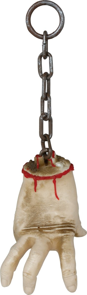 Maak jouw Halloween setting extra luguber met deze nep hand aan ketting van 40 cm. Perfect als enge accessoire voor een spookhuis of griezelfeest en ideaal om de gasten te laten schrikken.