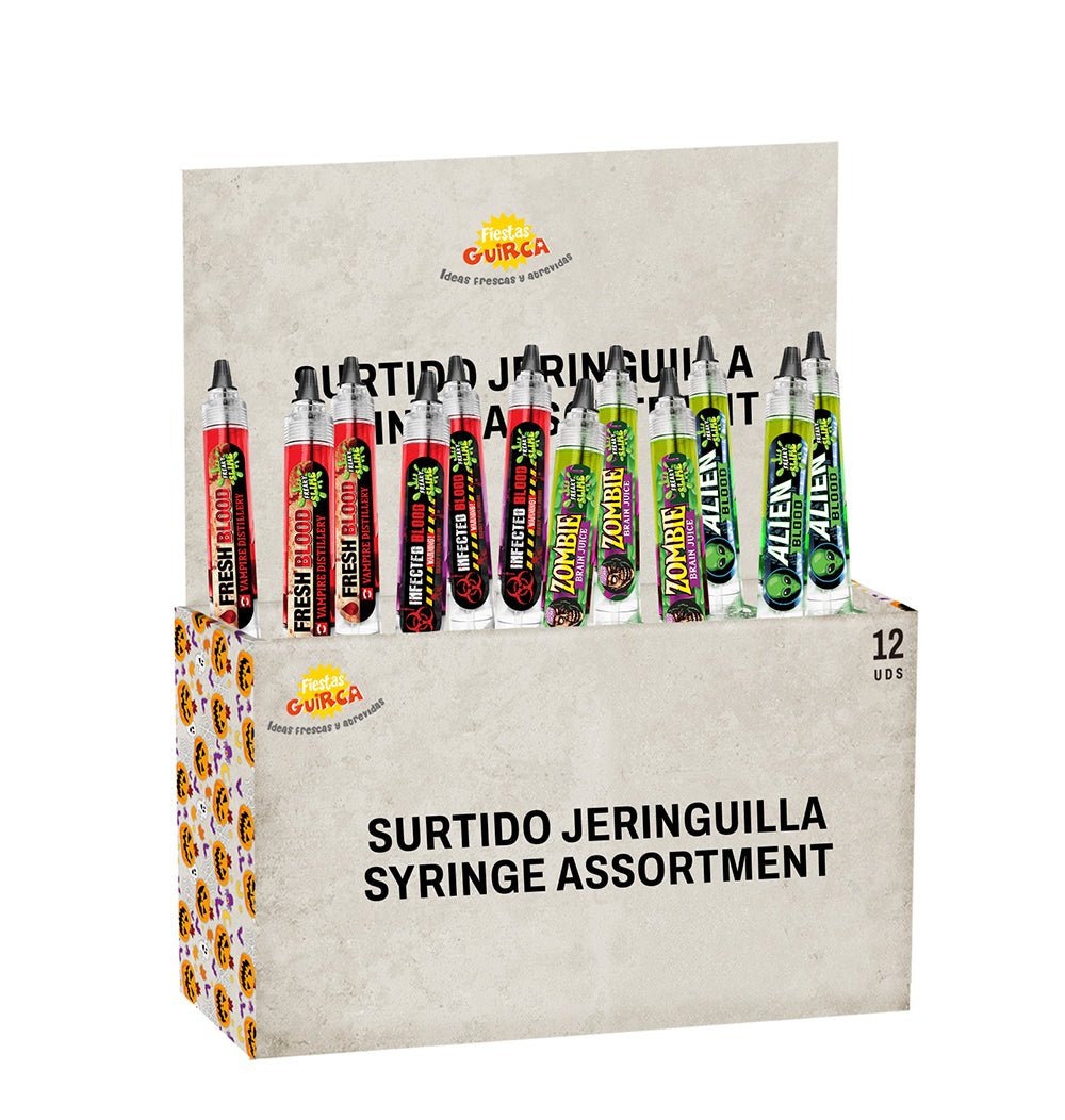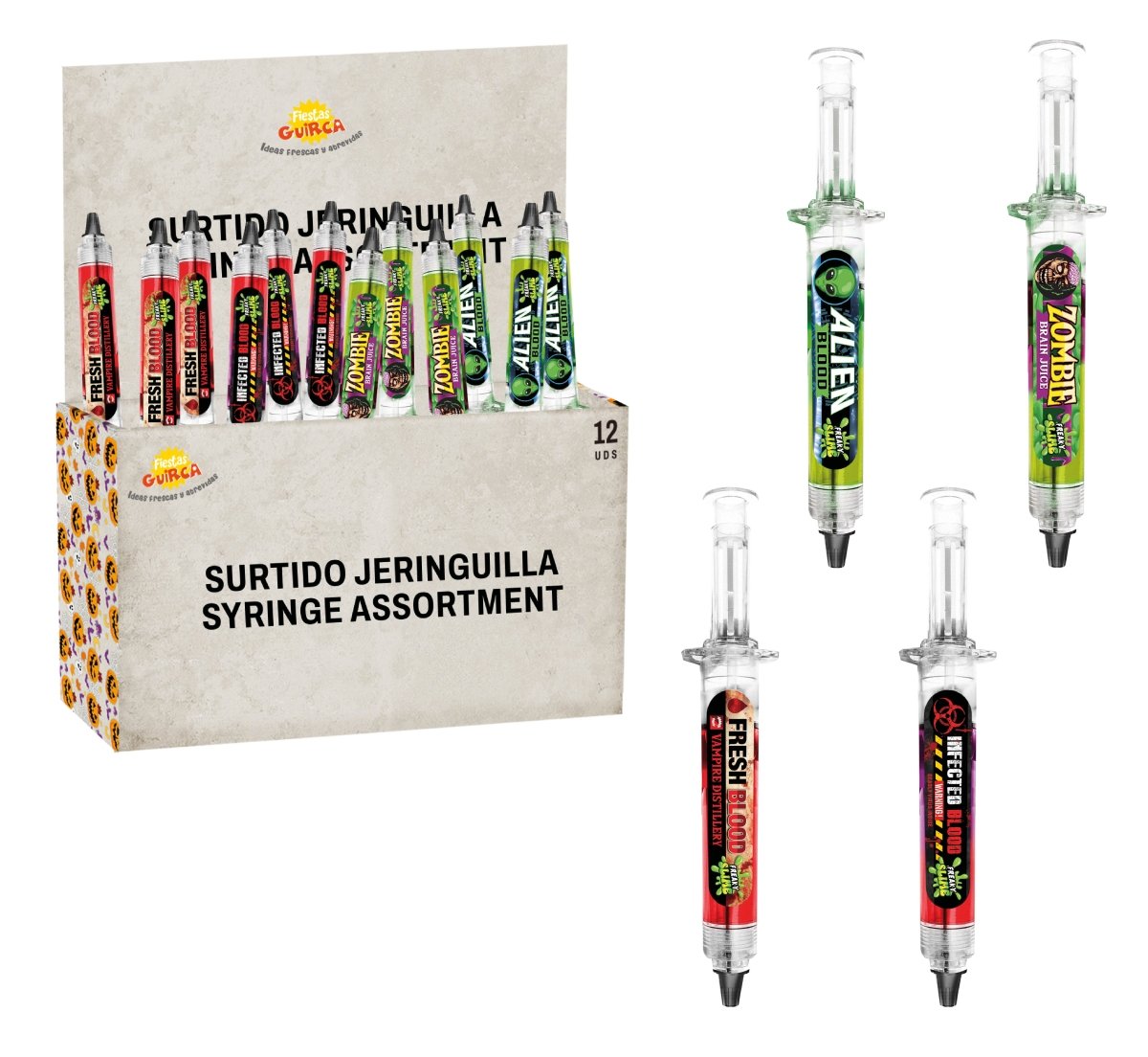De spuitjes zijn gemaakt van lichtgewicht pvc en veilig in gebruik. Een opvallend en angstaanjagend accessoire voor een bloedstollende Halloweenervaring.