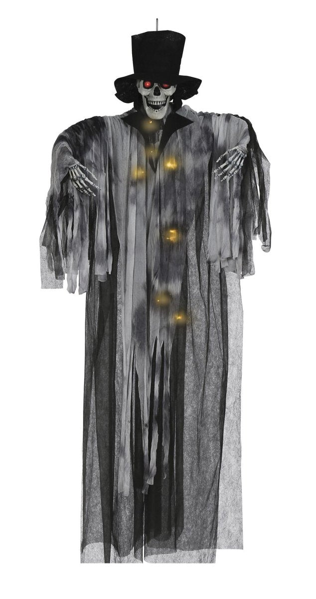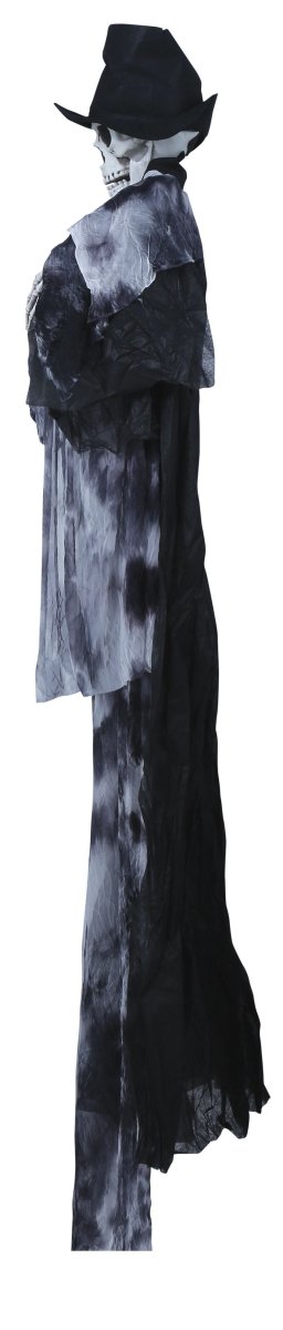 Maak je Halloween-feest griezelig en interactief met deze hangende Pop Bruidegom van 1,8 m. De pop reageert op geluid en voegt direct een angstaanjagende sfeer toe aan je decoratie.