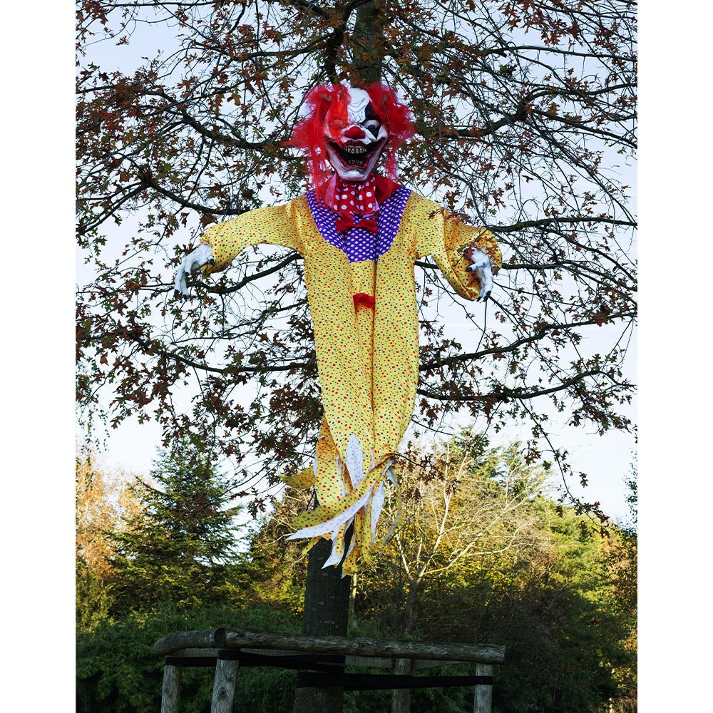 Maak je Halloween-feest onvergetelijk met deze reusachtige Clown pop van 3,5 meter. Met zijn felgekleurde outfit, angstaanjagende glimlach en wilde rode haren is deze horrordecoratie een echte eyecatcher. Hang hem in een boom, bij de voordeur of in een spookhuis en laat iedereen de stuipen op het lijf jagen.