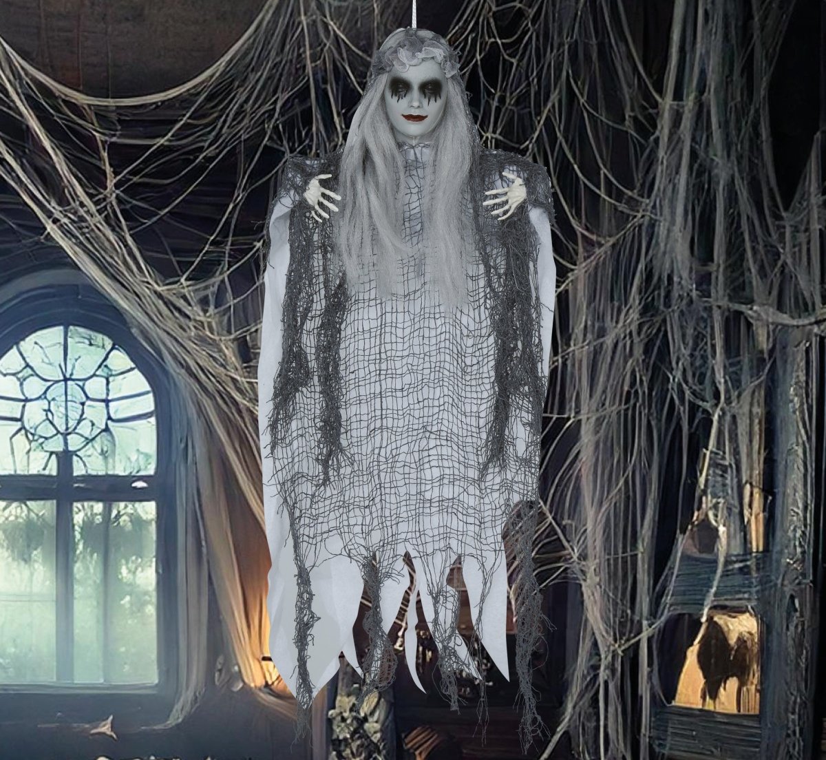 Halloween Pop Dode Vrouw 50cm is een enge hangdecoratie die zorgt voor een griezelige sfeer tijdens Halloween. Deze pop van 50 cm kan overal worden opgehangen en is perfect voor in huis, tuin of een spookhuis. Met haar angstaanjagende uitstraling is ze een echte blikvanger voor iedereen die durft te komen.