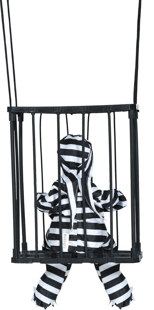 Voeg een griezelige touch toe aan je Halloweendecoratie met deze pop van een gevangen skelet. Perfect om je huis, kamer of tuin een enge sfeer te geven. De pop is stevig gemaakt en eenvoudig te plaatsen.