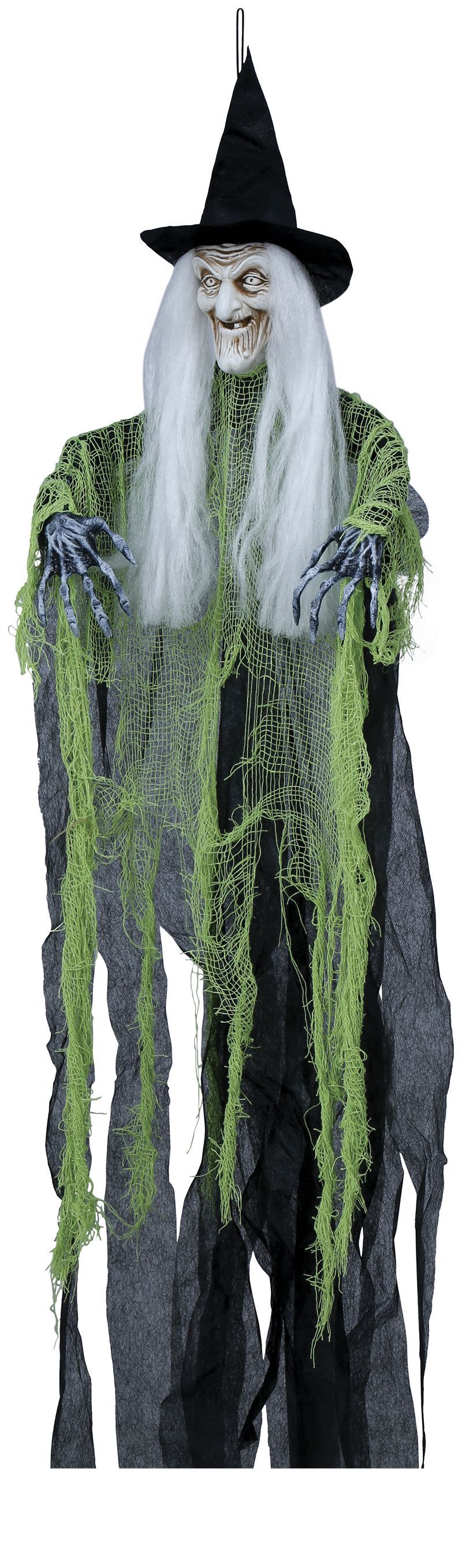 Maak je Halloweenfeest compleet met de Halloween Pop Heks van 1 meter. Deze enge heks in zwart/groene kleuren is perfect om een griezelige sfeer te creëren in huis, een spookhuis of tijdens een Halloween party. Hang haar op of zet haar neer voor een angstaanjagend effect.