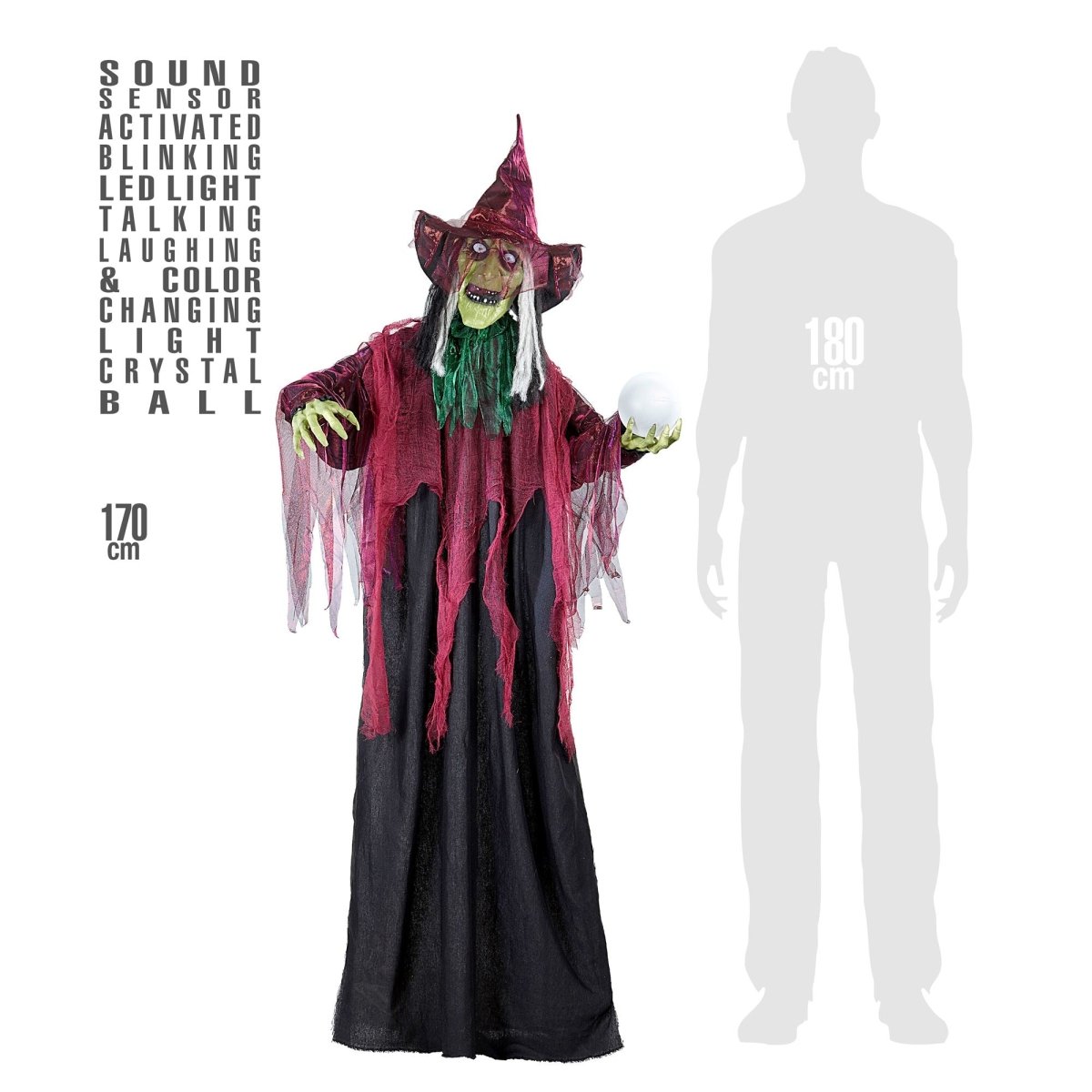 Voeg een griezelige en iconische touch toe aan je Halloweenversiering met deze Halloween pop heks met licht en geluid. Perfect voor een enge sfeer tijdens Halloween in huis of tuin.