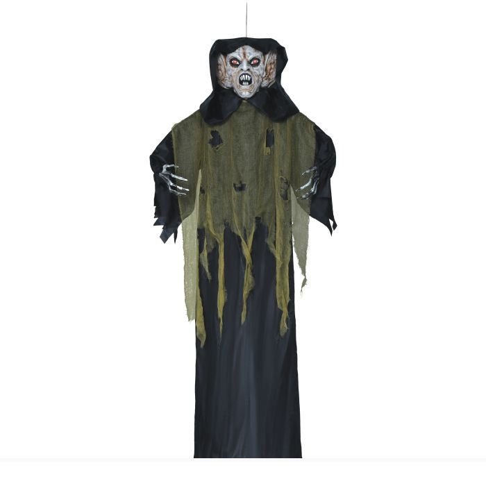 Maak je Halloween-feest angstaanjagend met deze Vampier pop van 1,8 meter. De pop is voorzien van licht en geluid en gemaakt van brandvertragend materiaal, waardoor hij een opvallende en veilige decoratie is voor je feestlocatie of themaruimte.