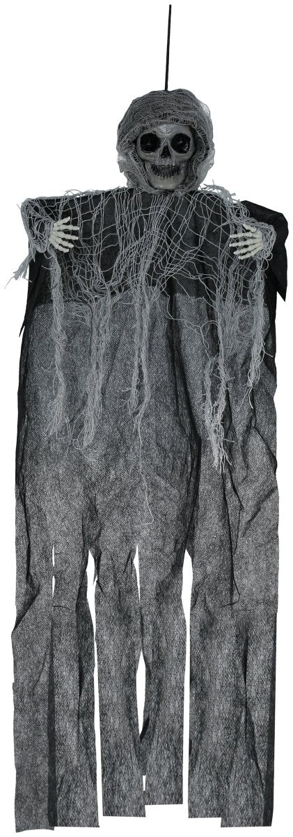 Voeg een griezelige en iconische touch toe aan je Halloweenversiering met deze Halloween Pop Zwart Skelet Met Cape van 60 cm. Perfect voor een enge sfeer tijdens Halloweenfeesten, spookhuizen of thuis.