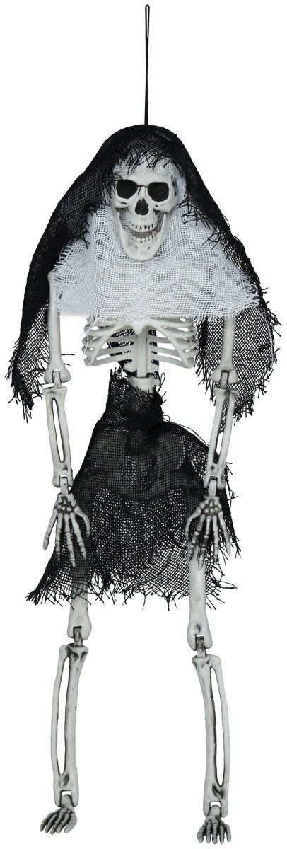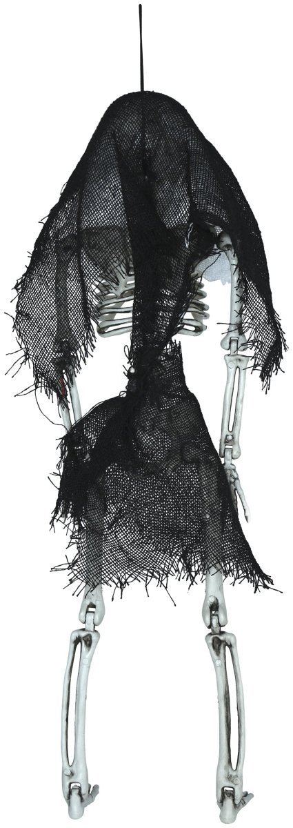 Geef je Halloween-feest een griezelige uitstraling met dit Skelet met Capuchon van 45 cm. Het angstaanjagende ontwerp is direct opvallend als hangdecoratie.