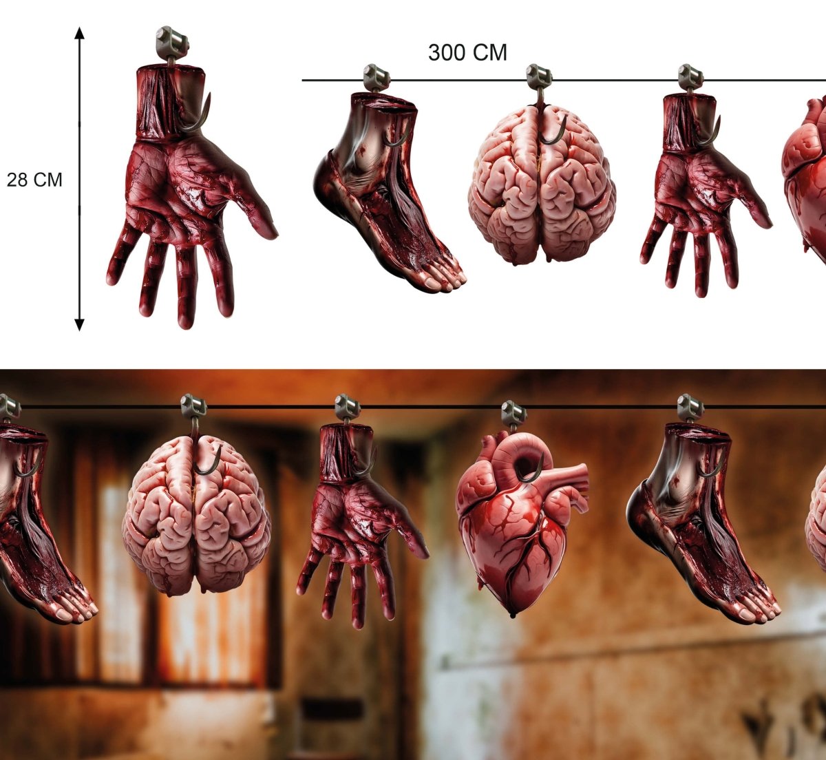Breng je Halloween-feest tot leven met deze griezelige slinger vol organen. Een opvallende decoratie die zorgt voor een angstaanjagende sfeer.
