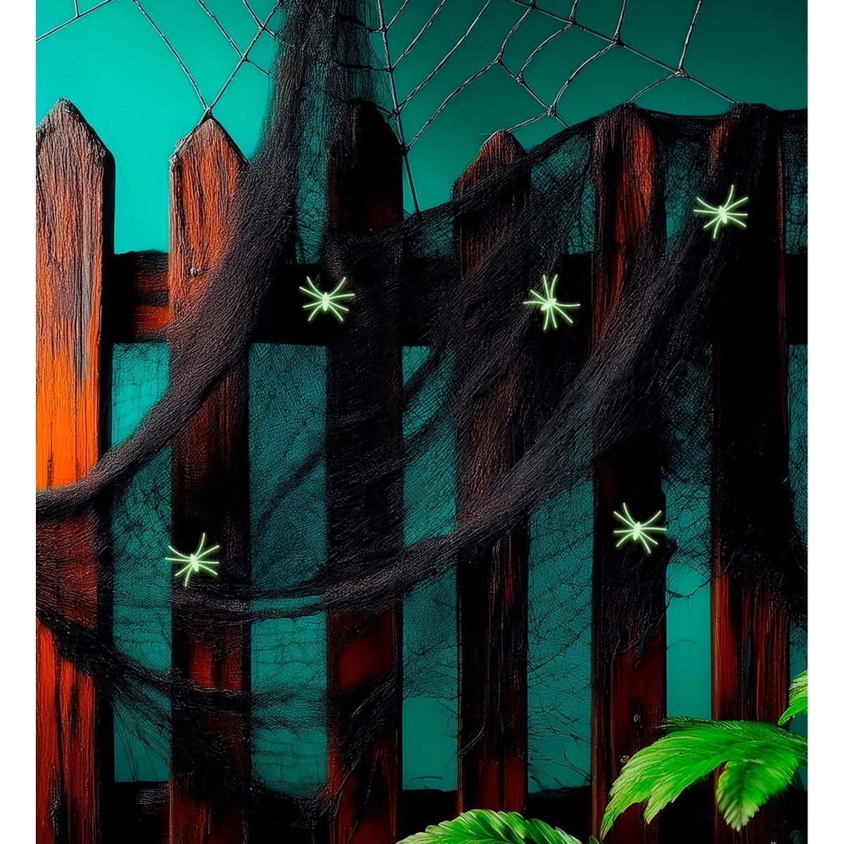 Halloween Spinnenweb Zwart Met 5 Spinnen 100gr