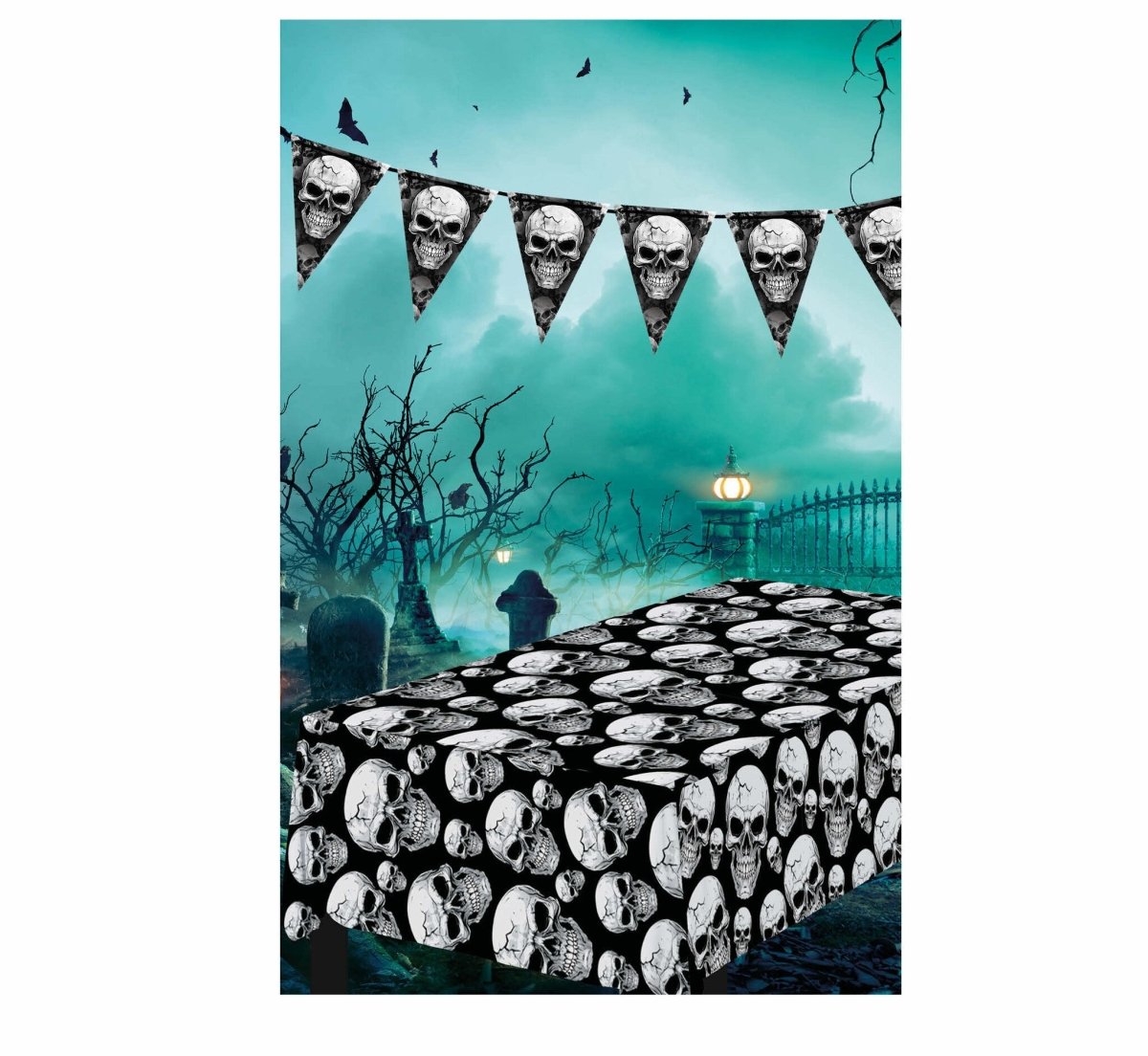 Halloween Tafelkleed Doodshoofden 2,74m