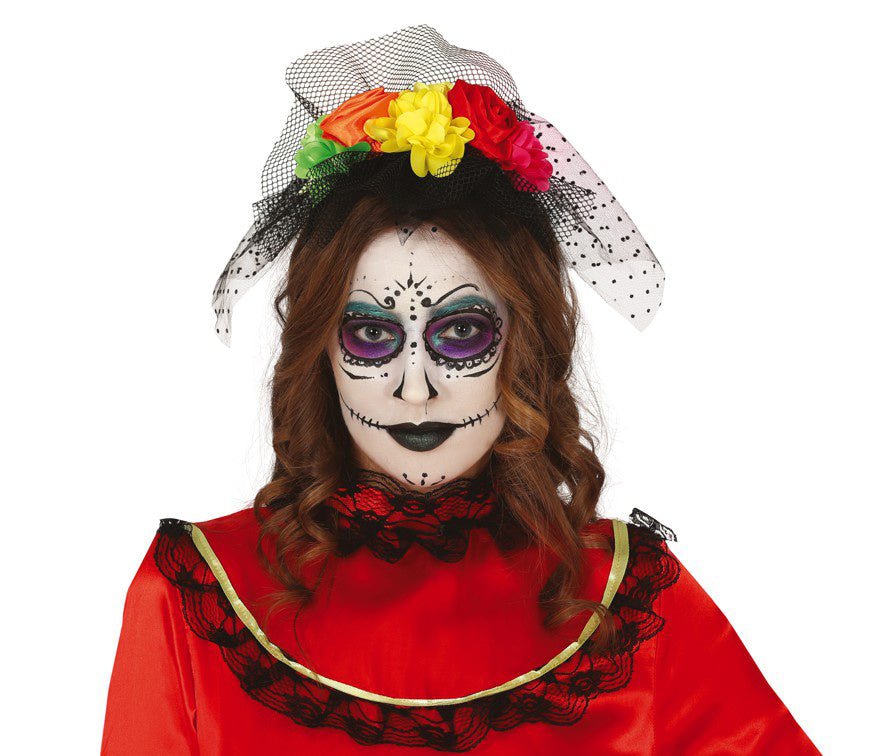 Halloween Tiara Bloemen En Sluier Gekleurd