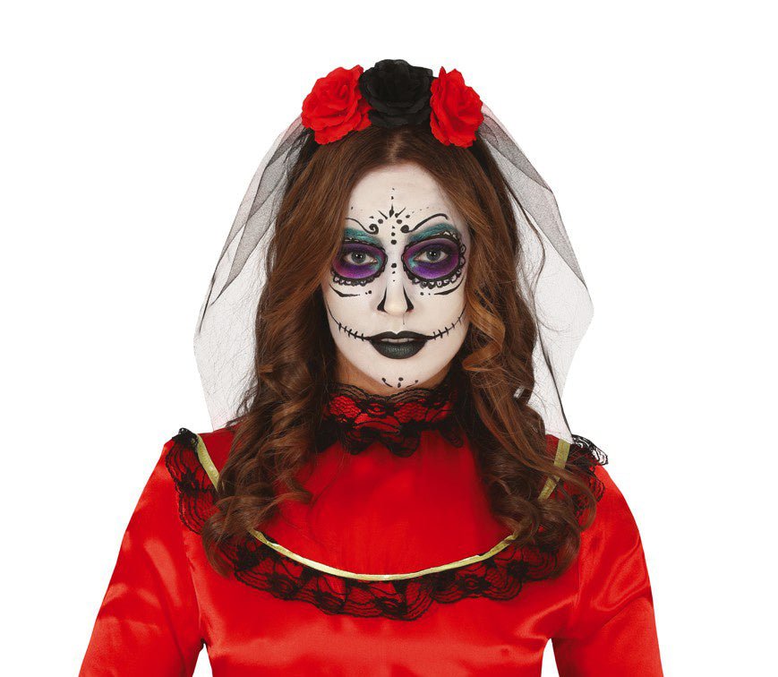 Halloween Tiara Sluier En Bloemen Rood