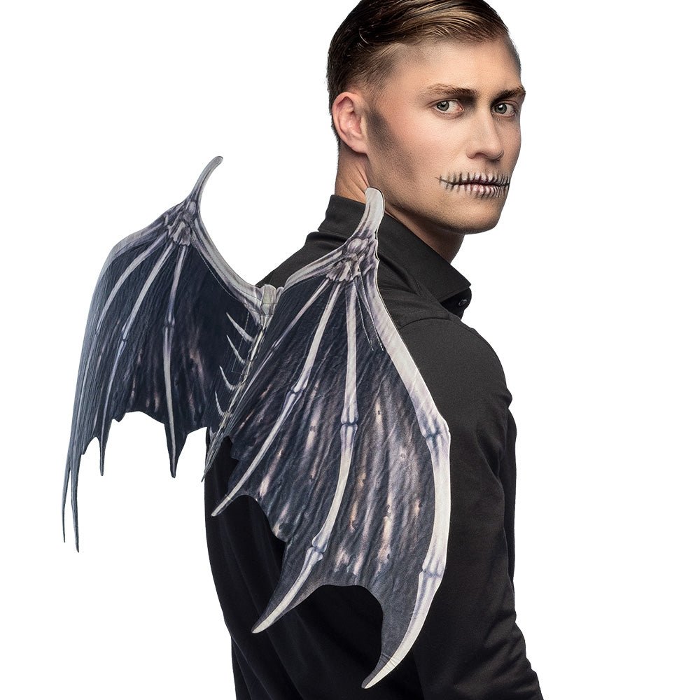 Deze vleermuis vleugels zorgen voor een mysterieuze en duistere look. Het realistische design geven de vleugels een extra angstaanjagend effect. De vleugels zijn gemaakt van polyester waardoor ze licht van gewicht zijn en daardoor gemakkelijk te dragen. Dé perfecte toevoeging aan een duistere Halloween - of cosplay outfit als demoon, vleermuis of vampier.