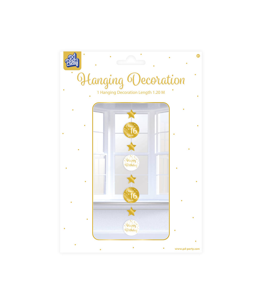 Hangdecoratie 16 Jaar Goud Wit 20,5cm