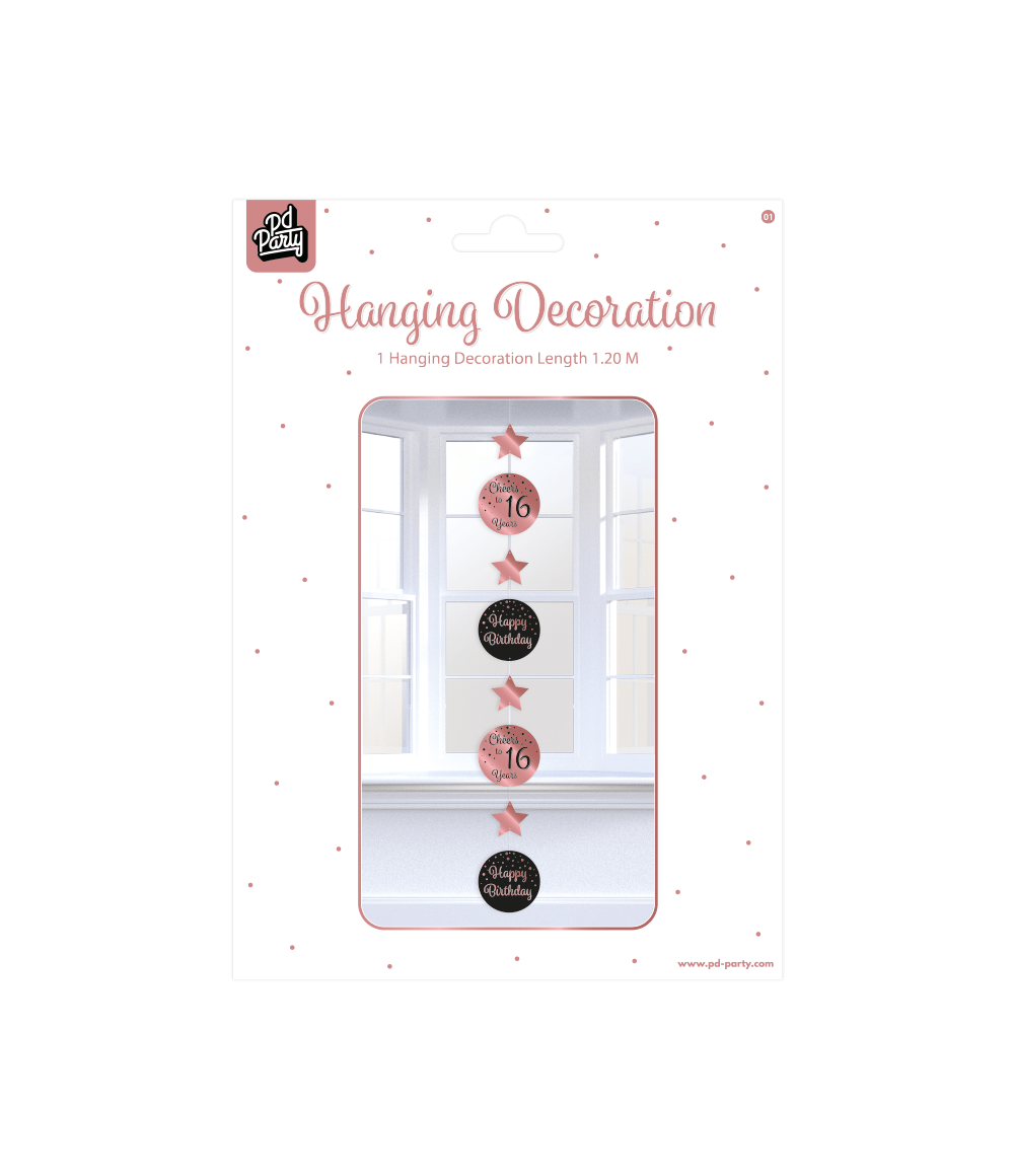 Hangdecoratie 16 Jaar Roze Zwart 20,5cm