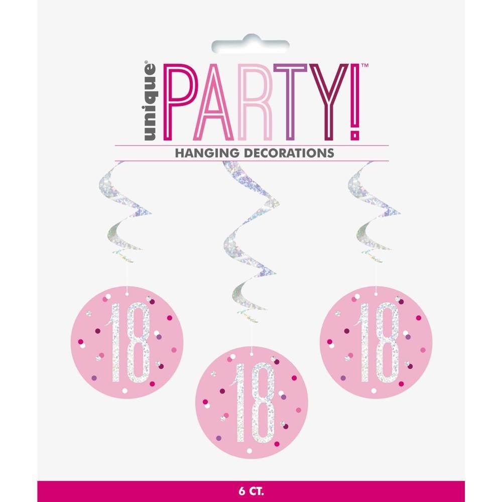 Hangdecoratie 18 Jaar Roze 81cm 6st