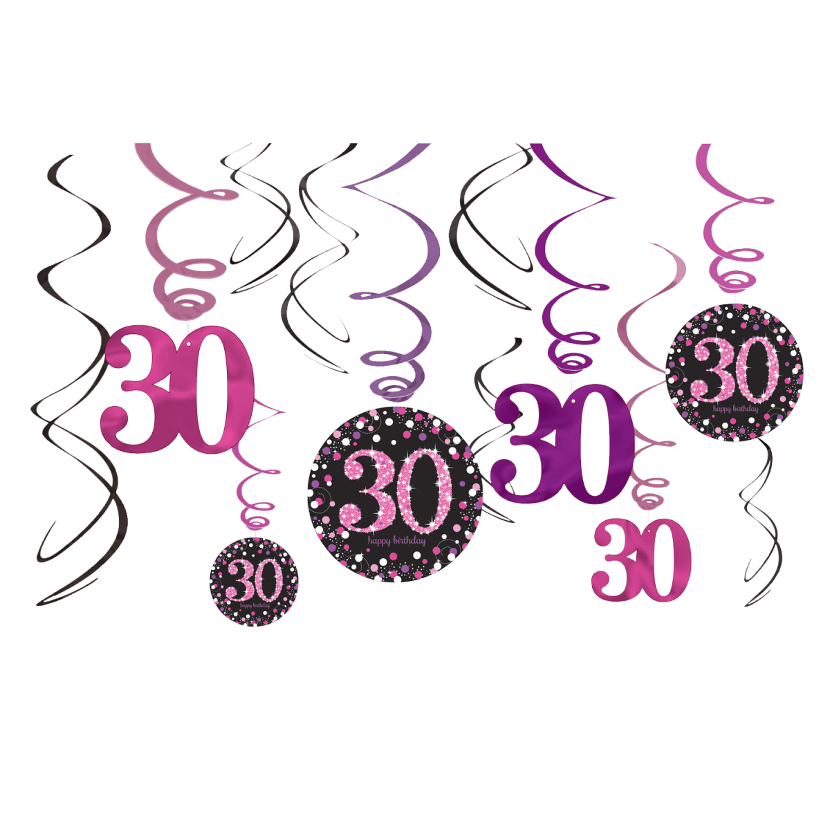 Verpakkingsinhoud: Hangdecoratie 30 Jaar 61cm Happy Birthday Roze 12st