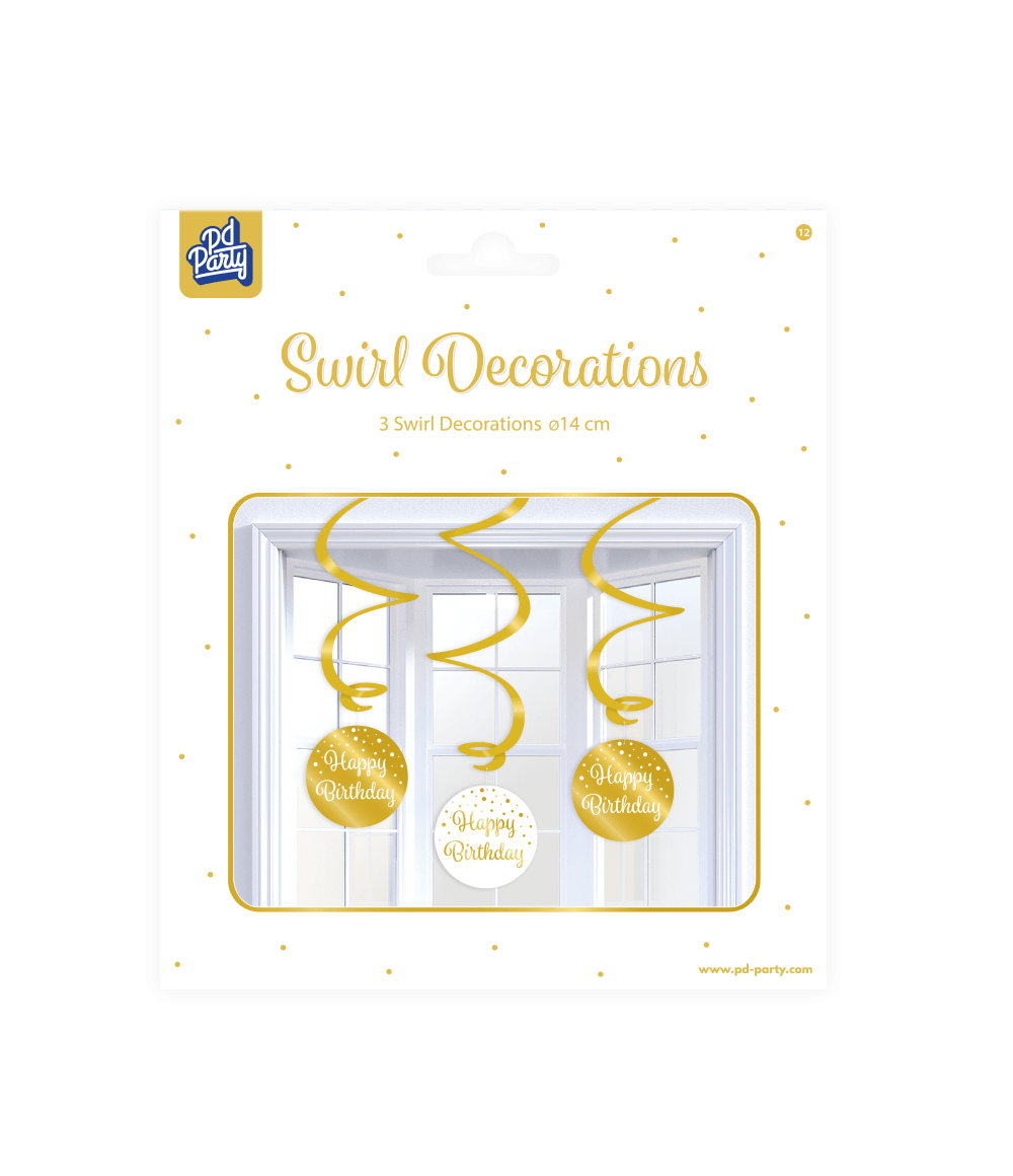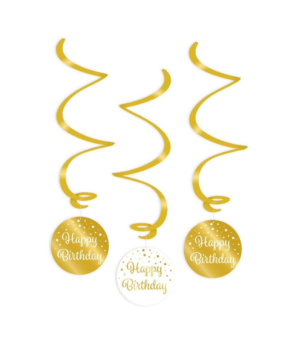 Hangdecoratie Happy Birthday Goud Wit 17cm 3st