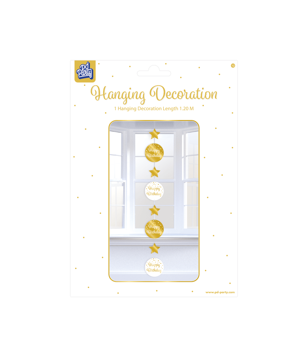 Hangdecoratie Happy Birthday Goud Wit 20,5cm