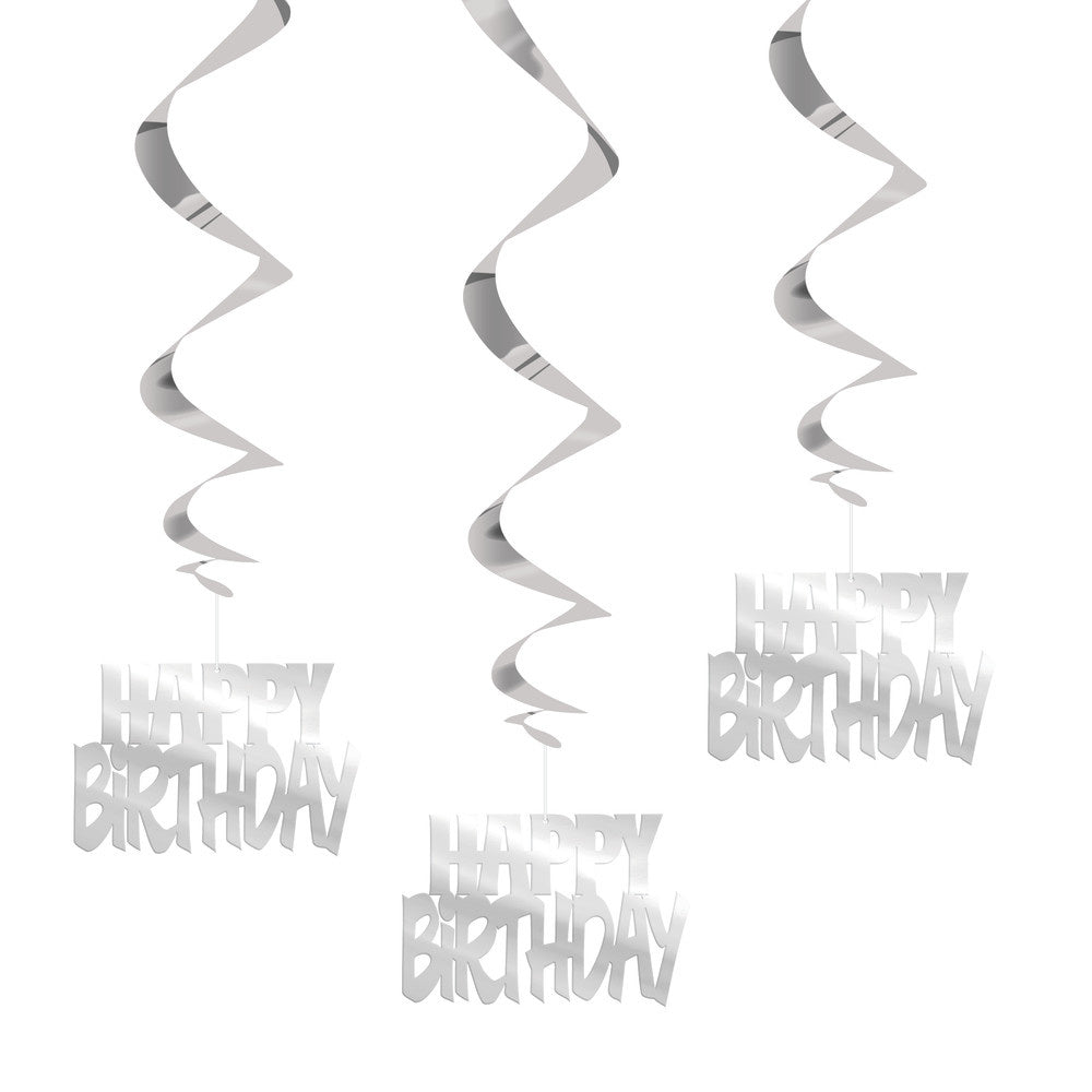 Hangdecoratie Happy Birthday Zilver 81cm 3st